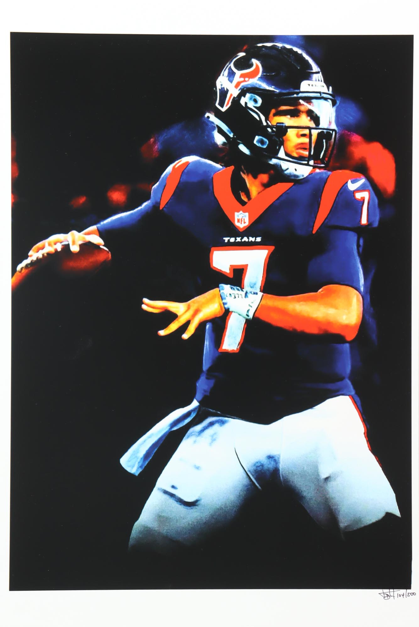 This limited edition giclee on high-quality matte fine art smooth 230gsm paper measures approximately 12" x 18" in size. The piece is hand-signed and numbered by the artist, Joshua Barton and features C. J. Stroud (Houston Texans).