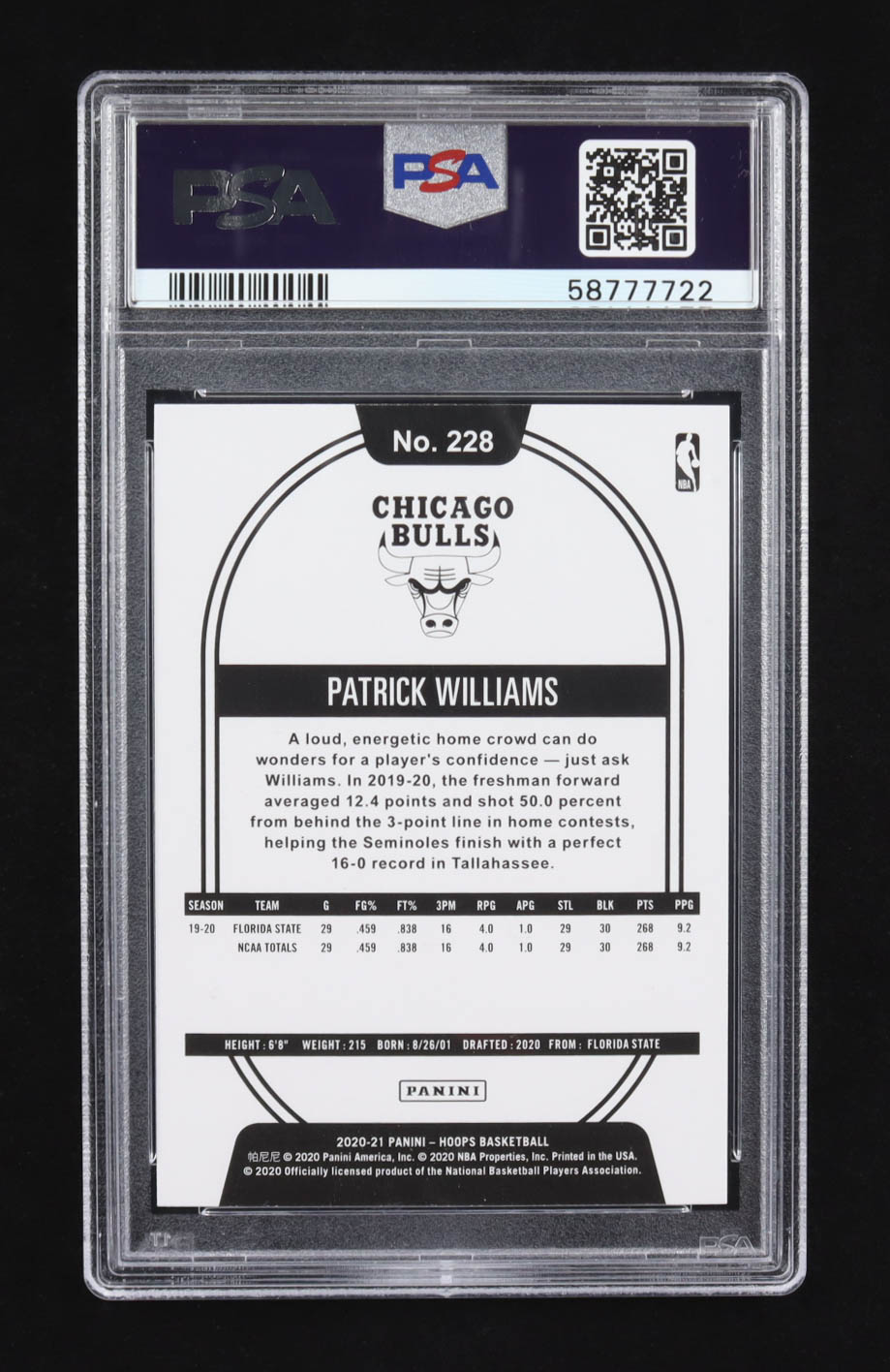 Patrick Williams 2020-21 Hoops #228 RC (PSA 10)