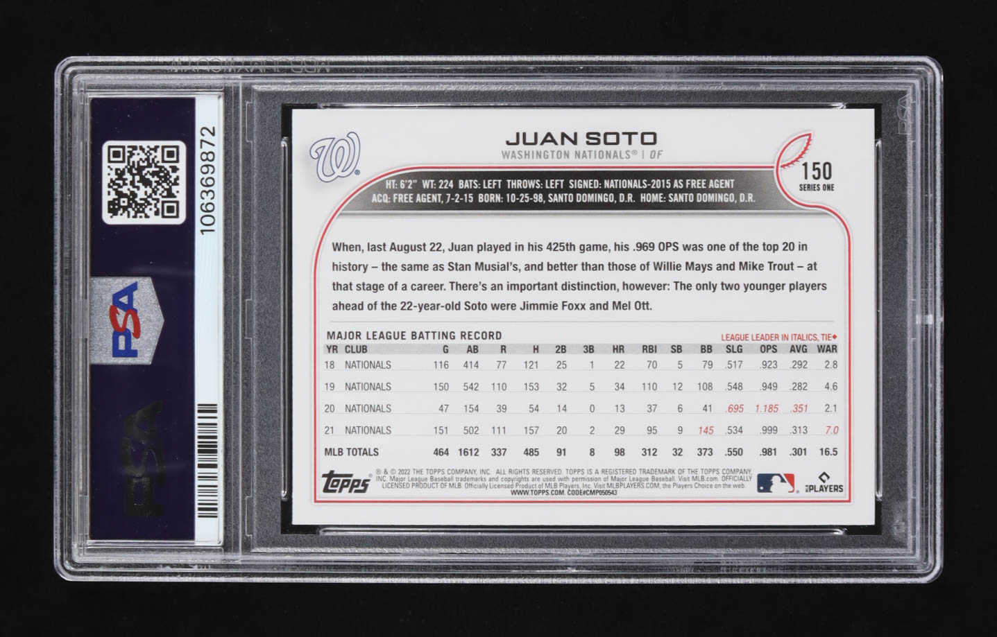 Juan Soto 2022 Topps #150 (PSA 10)