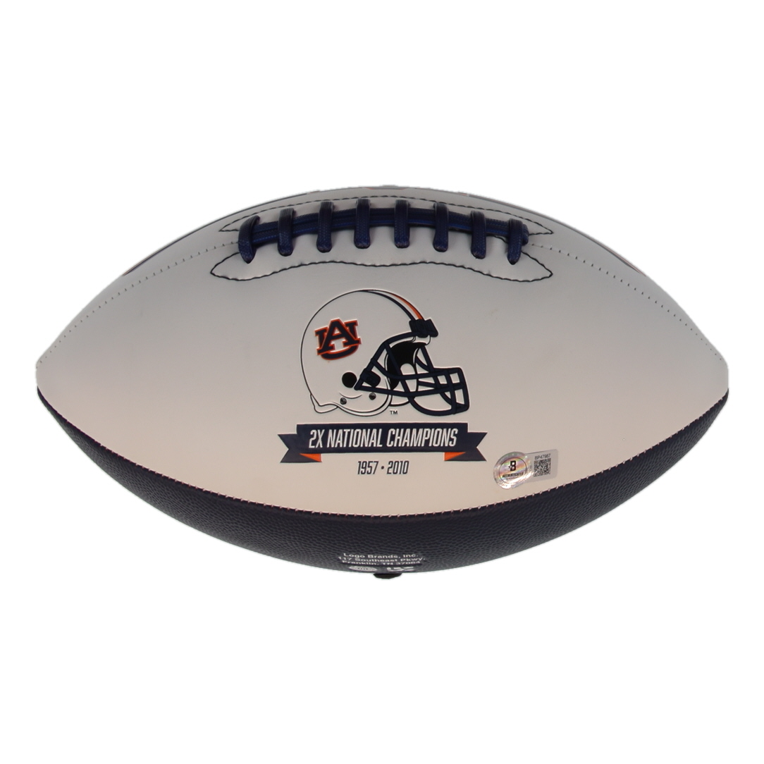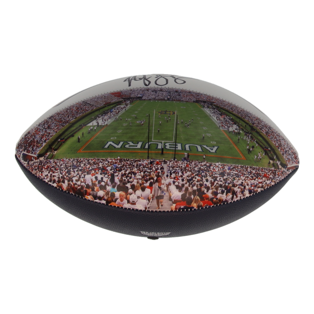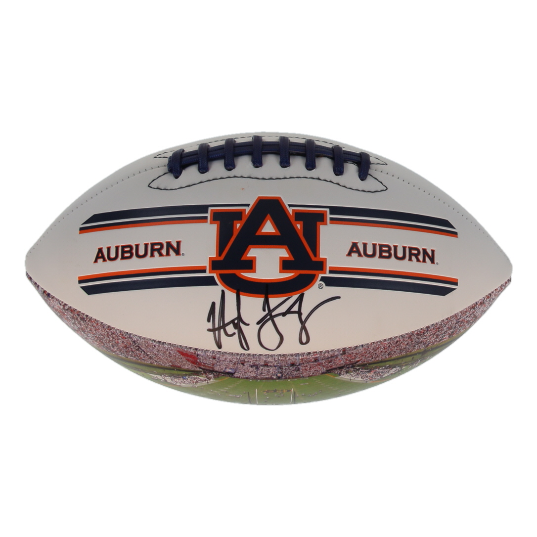 Auburn Tigers logo full-size football has been hand-signed by Hugh Freeze.