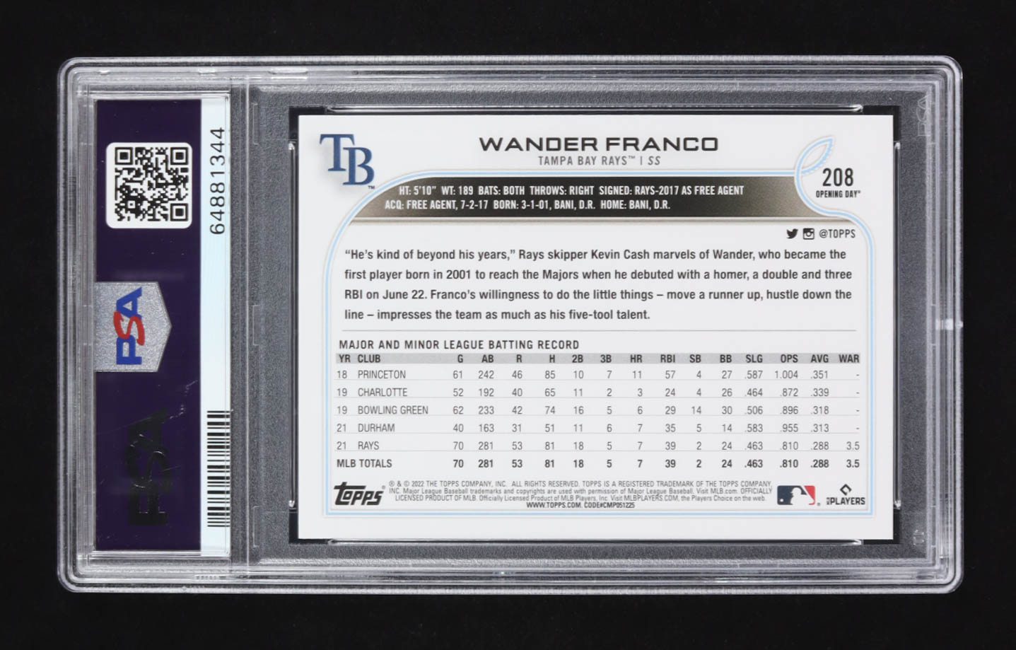 Wander Franco 2022 Topps Opening Day #208 RC (PSA 10)