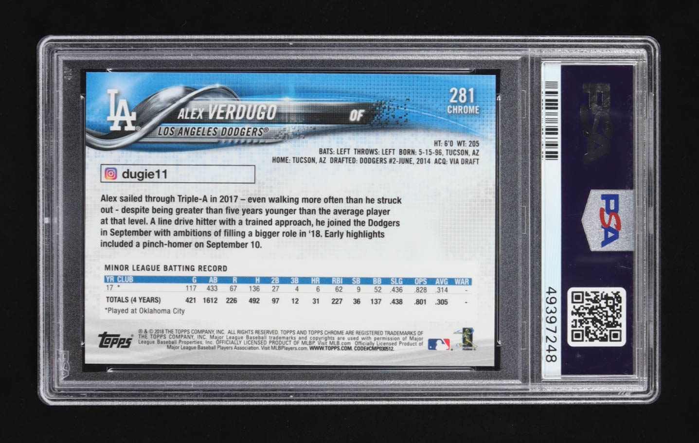 Alex Verdugo 2018 Topps Chrome Sapphire Edition #281 RC (PSA 10)