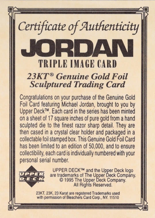 Michael Jordan 1995 Upper Deck 23KT Gold Jordan Triple Image #NNO