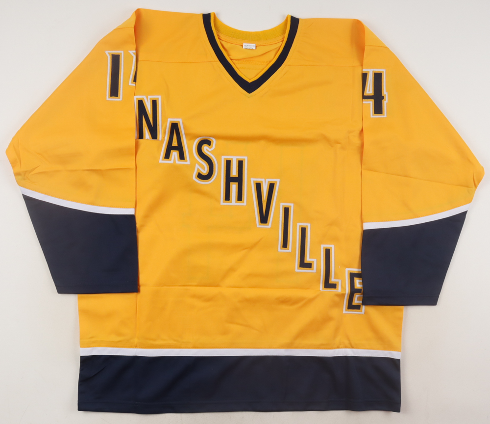 Custom jersey. Everything sewn on, size XL. Hand-signed by Mattias Ekholm.