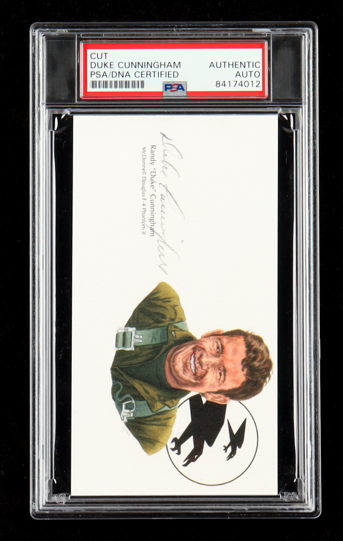 Cut measures approximately 3" x 5.5" in size and has been hand-signed by Duke Cunningham (D. 2025).