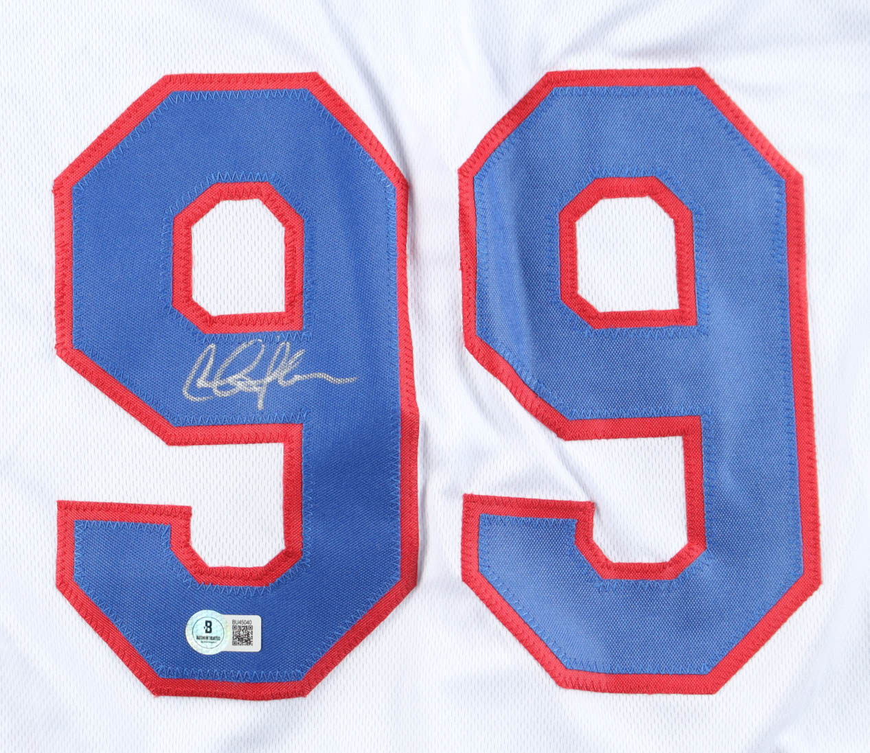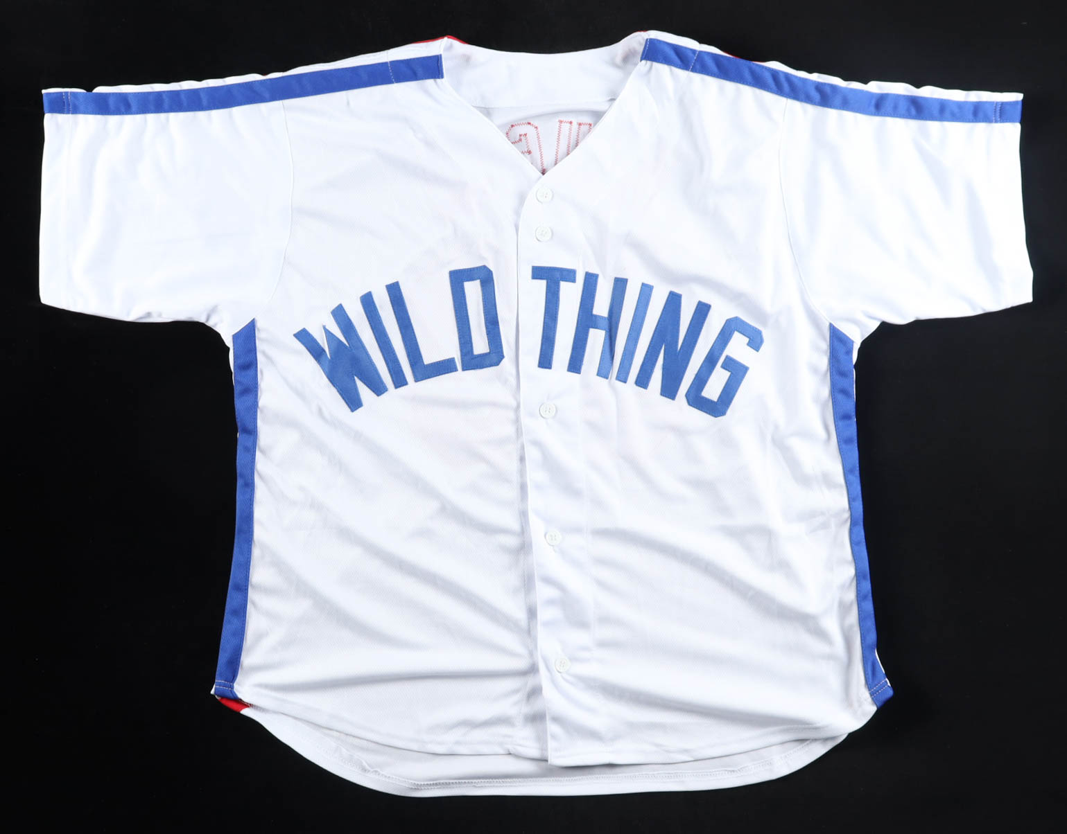 Custom jersey with everything sewn on, size XL. Hand-signed by Charlie Sheen (Ricky "Wild Thing" Vaughn).