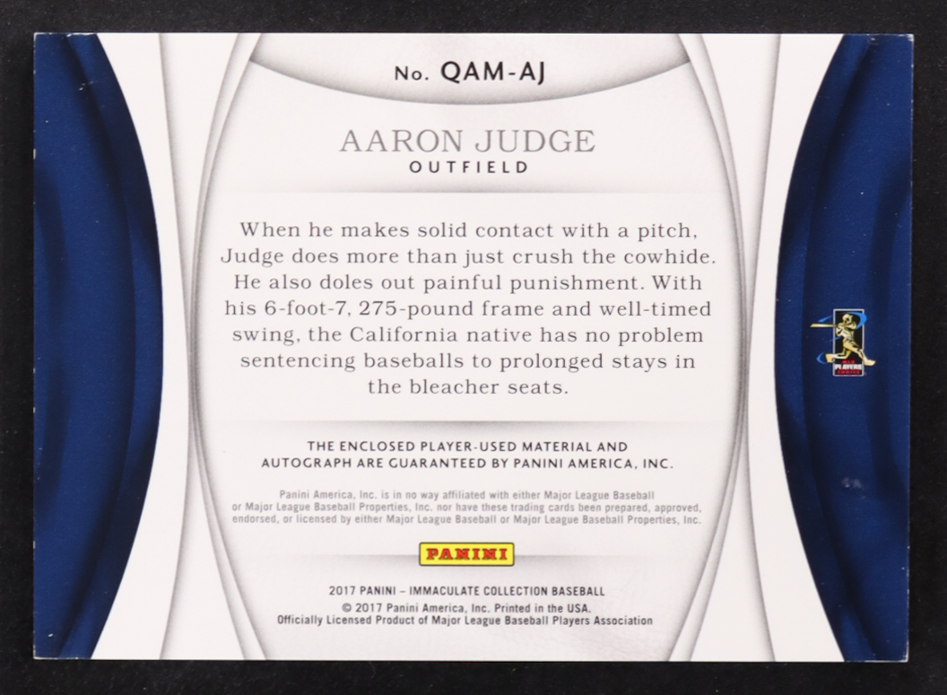 Aaron Judge 2017 Immaculate Collection Immaculate Quad Autograph Materials Rookie #12 RC #88/99