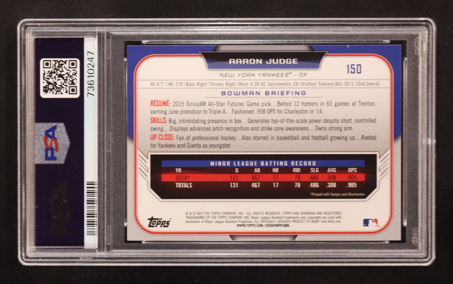 Aaron Judge 2015 Bowman Draft #150 RC (PSA 9)