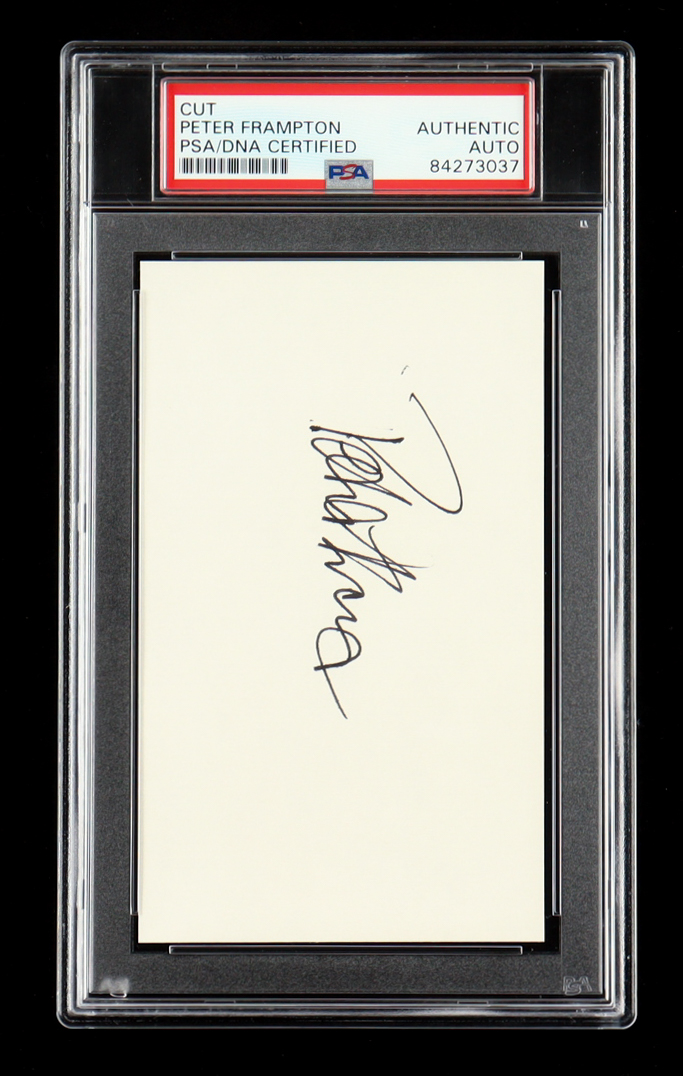 Cut measures approximately 3" x 5" in size and has been hand-signed by Peter Frampton (HOF).