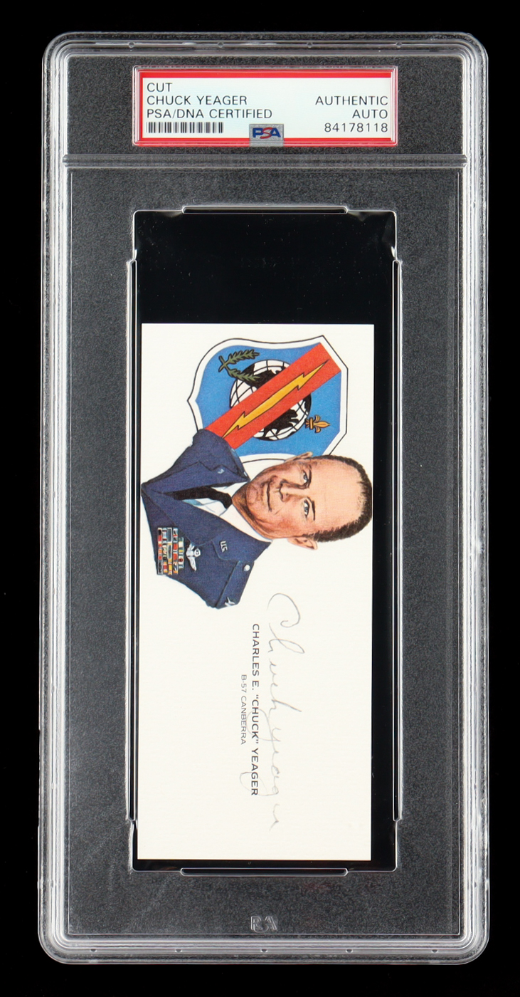 Chuck Yeager Signed Cut With Portrait (PSA)