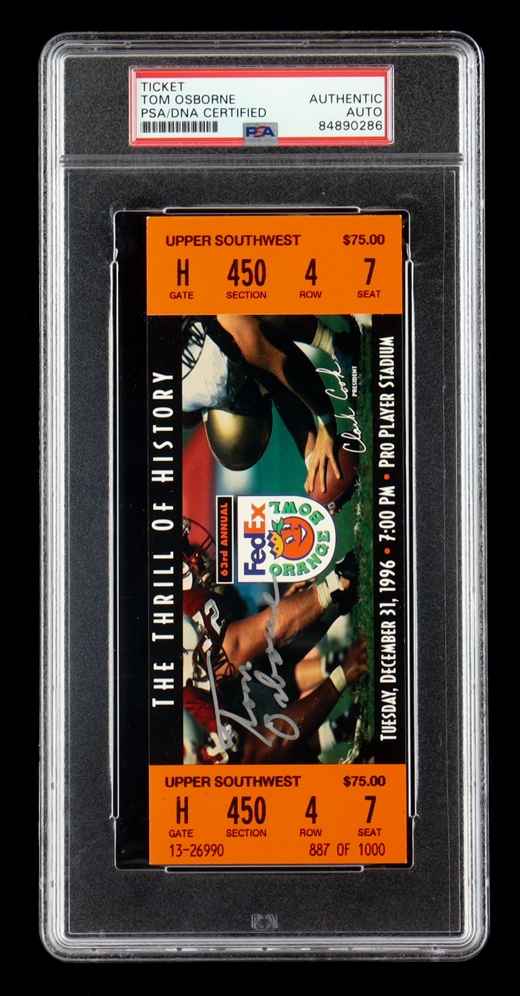 Tom Osborne Signed 1996 63rd Annual FedEx Orange Bowl Game Ticket (PSA)