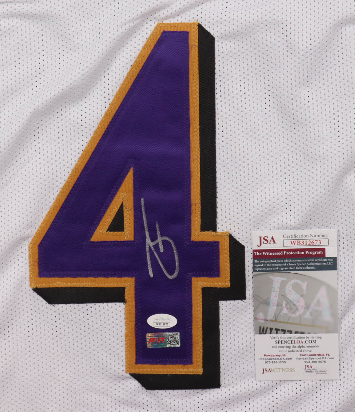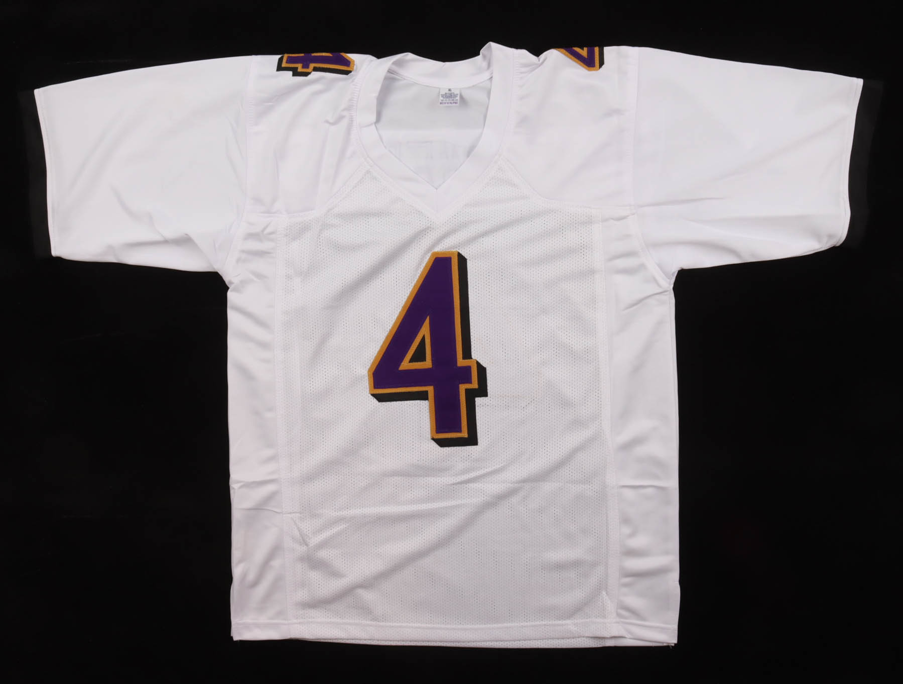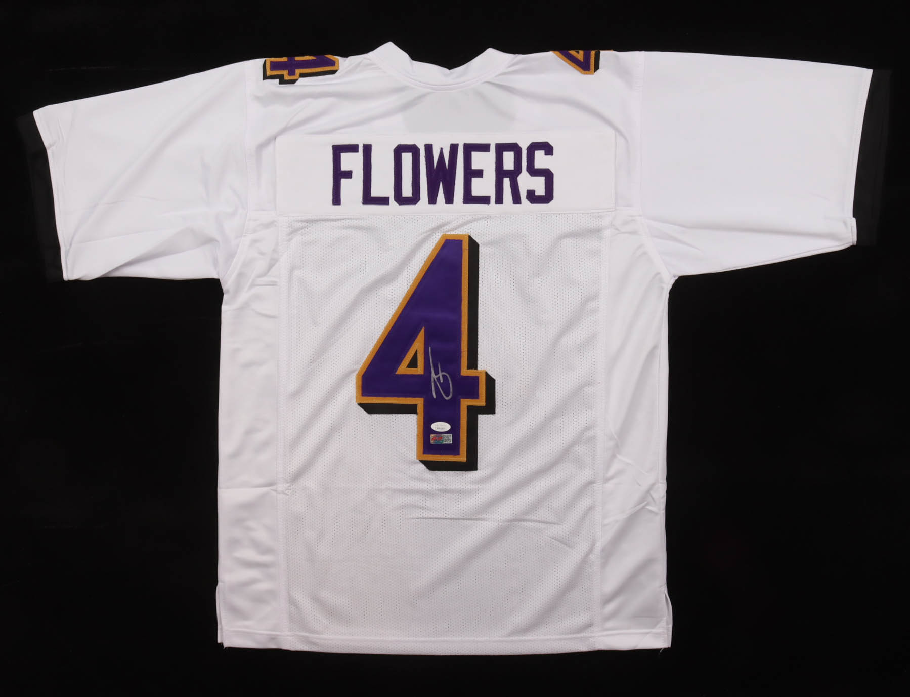 Custom jersey with everything sewn on, size XL. Has been hand-signed by Zay Flowers.