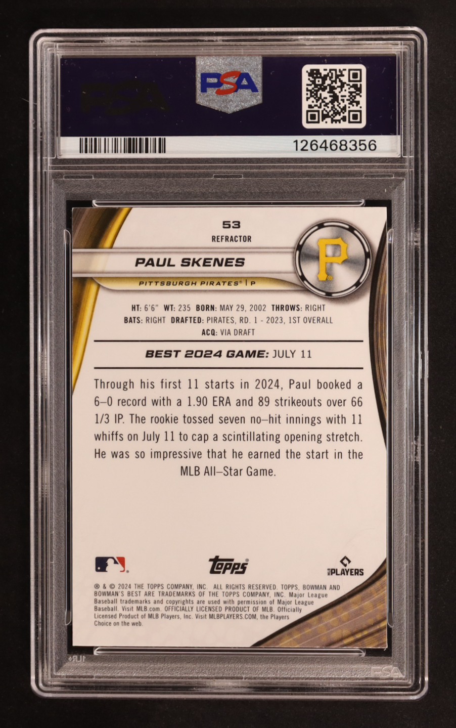 Paul Skenes 2024 Bowman's Best Refractors #53 RC (PSA 9)