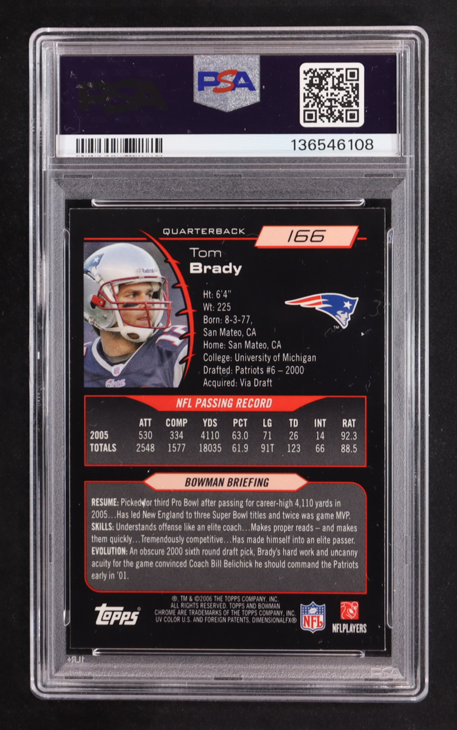 Tom Brady 2006 Bowman Chrome #166 (PSA 9)