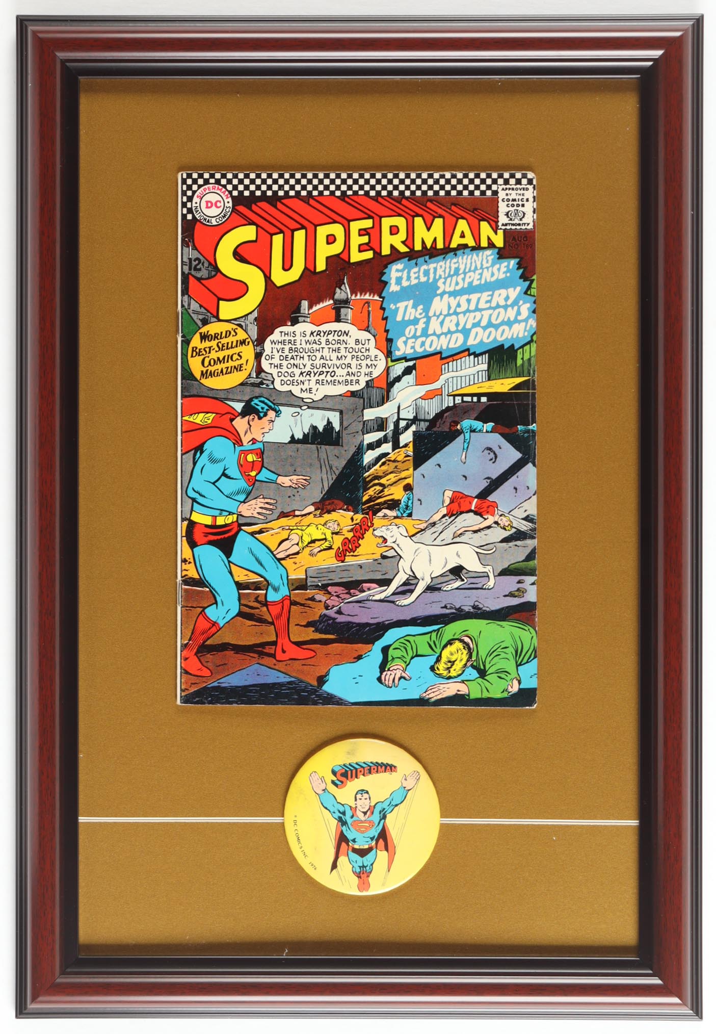 1966 "Superman" #189 Custom Framed DC Comic Book with Superman Pin