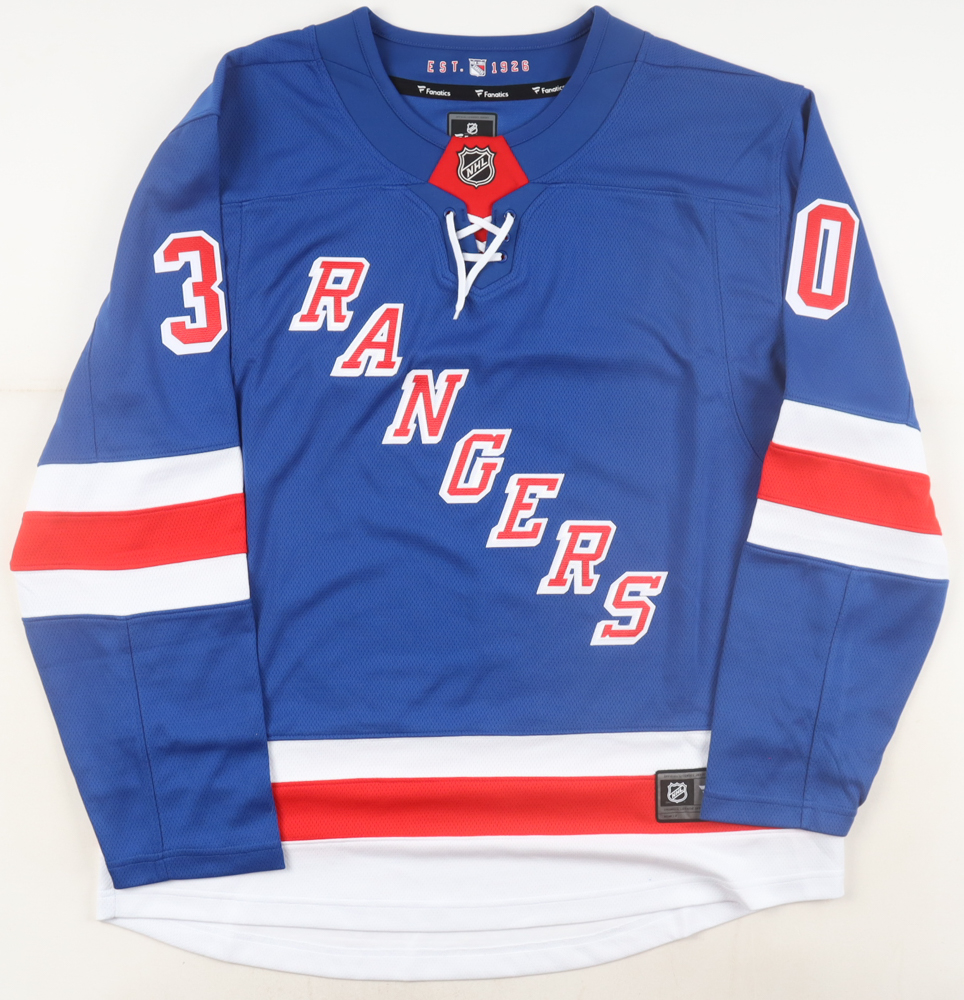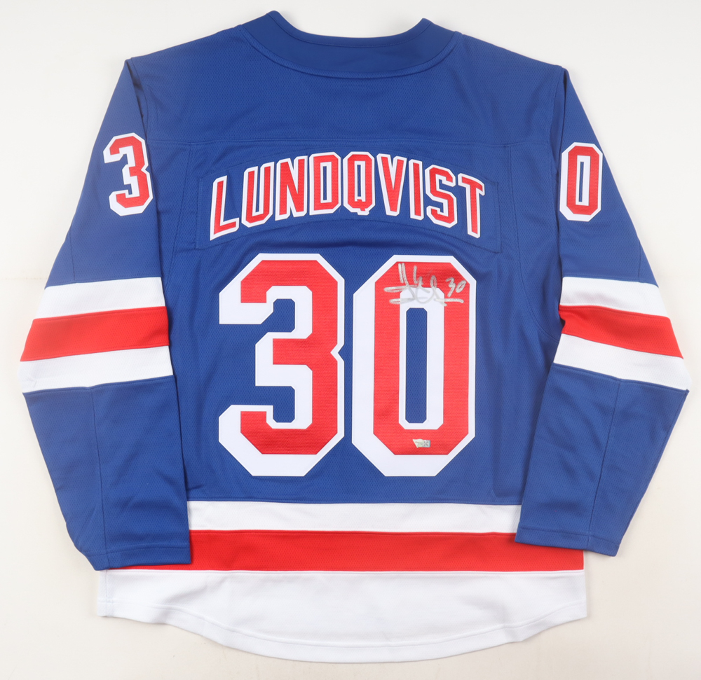 Fanatics jersey with everything pressed on, size L. Hand-signed by Henrik Lundqvist (New York Rangers, HOF).