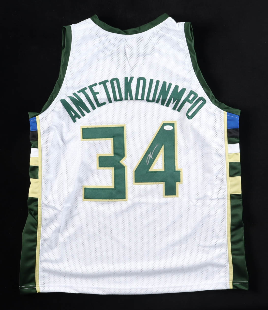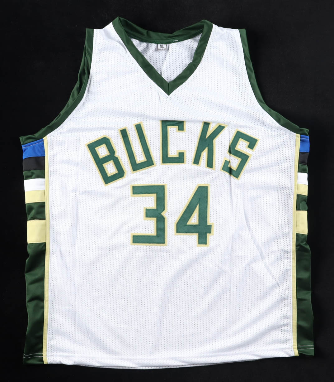 Custom jersey with everything sewn on, size XL. Hand-signed by Giannis Antetokounmpo.