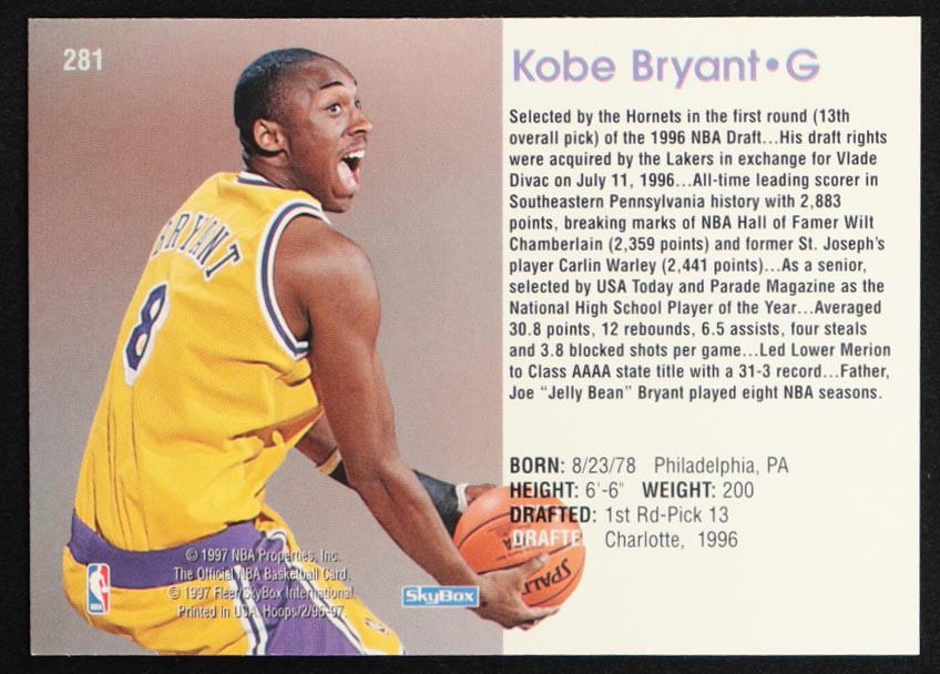 Kobe Bryant 1996-97 Hoops #281 RC