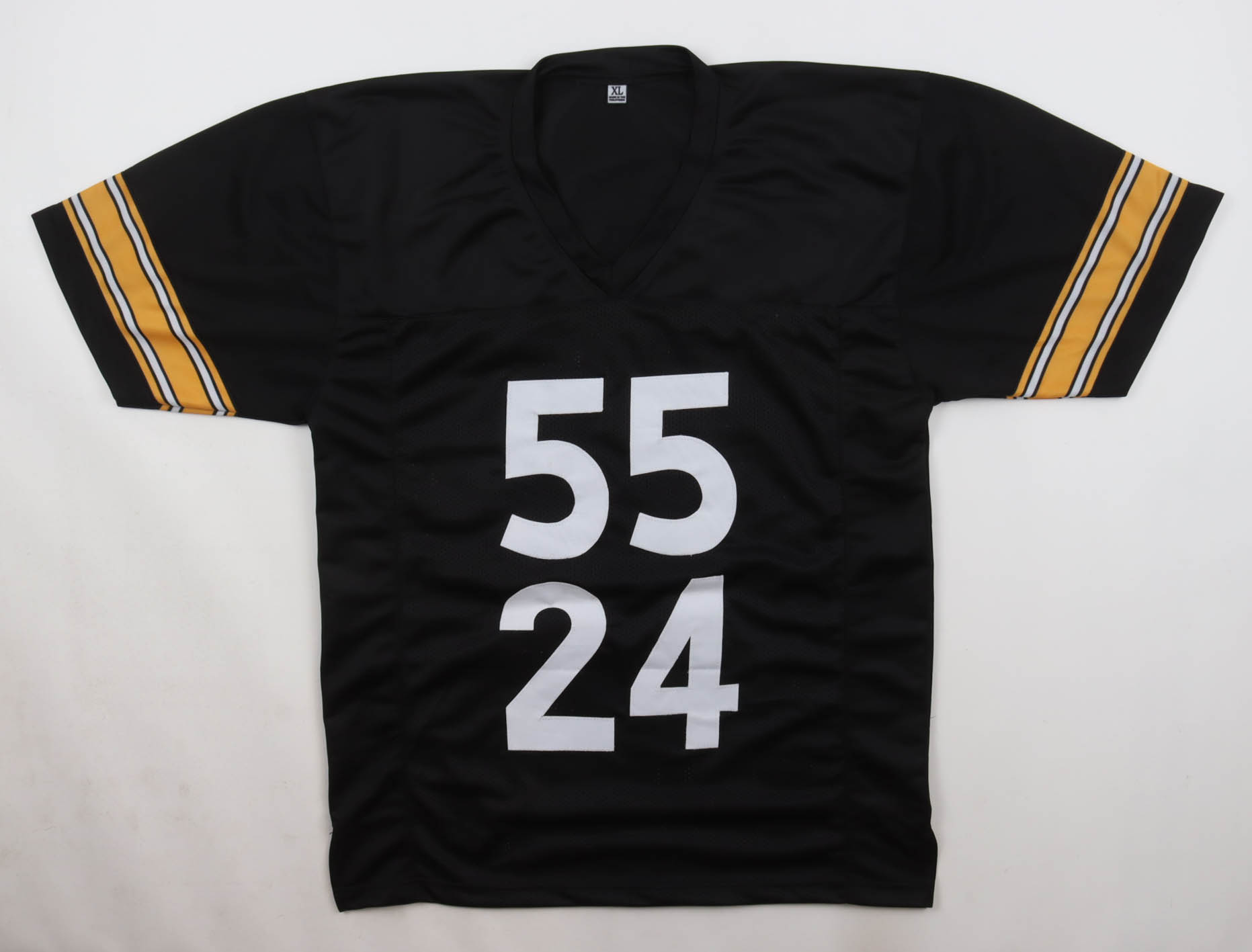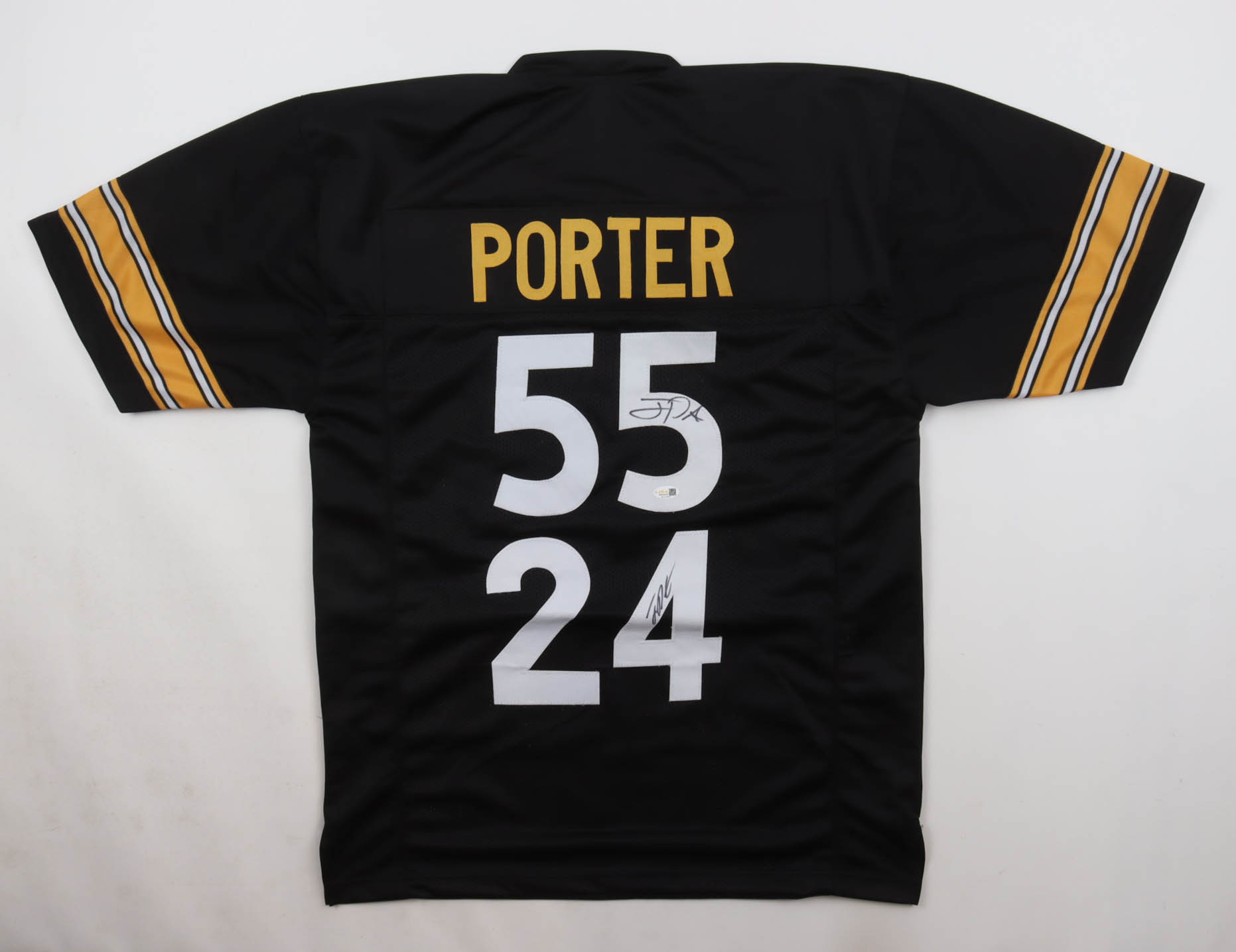 Custom jersey with everything sewn on, size XL. Hand-signed by Joey Porter Jr. and Joey Porter Sr.