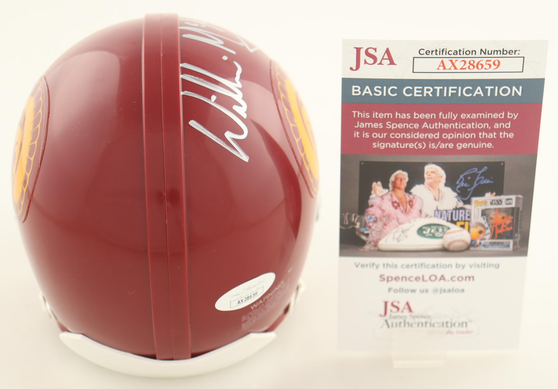 Riddell USC Trojans Mini Helmet has been hand-signed by Willie McGinest.