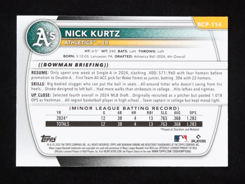 Nick Kurtz Topps 2025 Bowman Chrome Mojofractor #BCP-114 RC