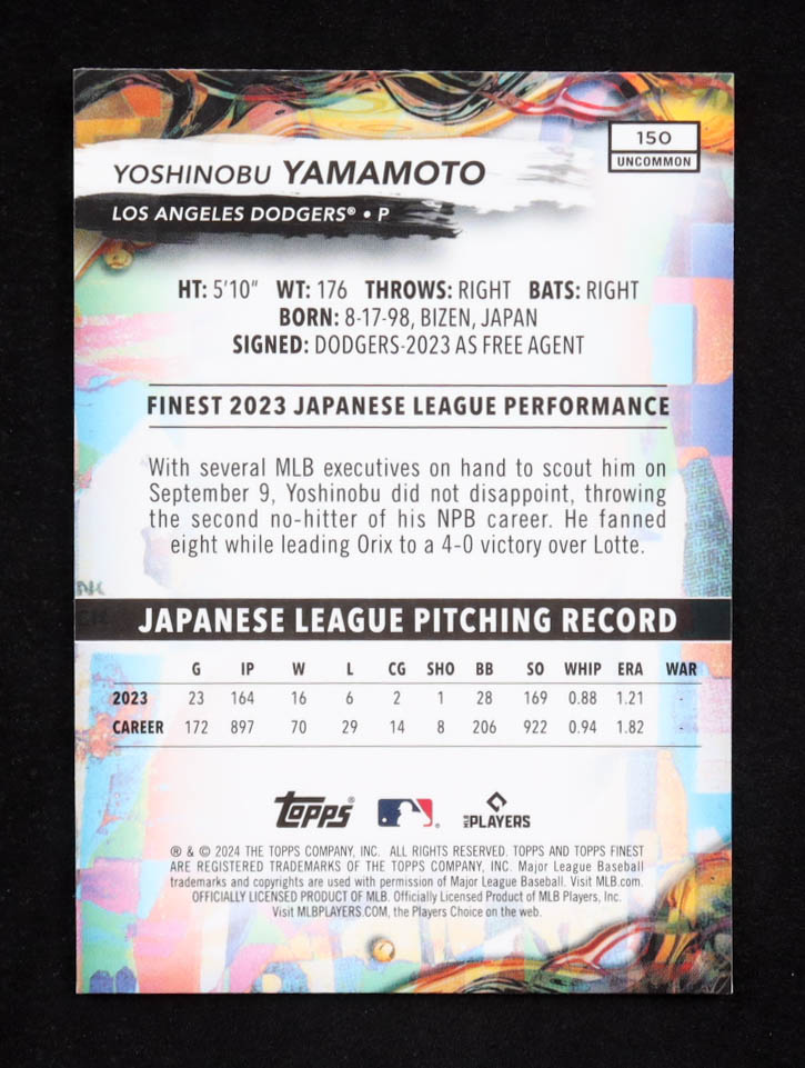 Yoshinobu Yamamoto 2024 Topps Finest #150 RC