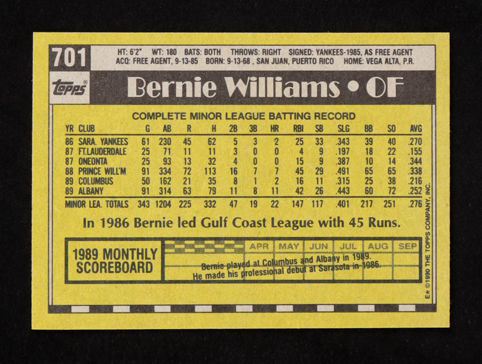 Bernie Williams 1990 Topps #701 RC