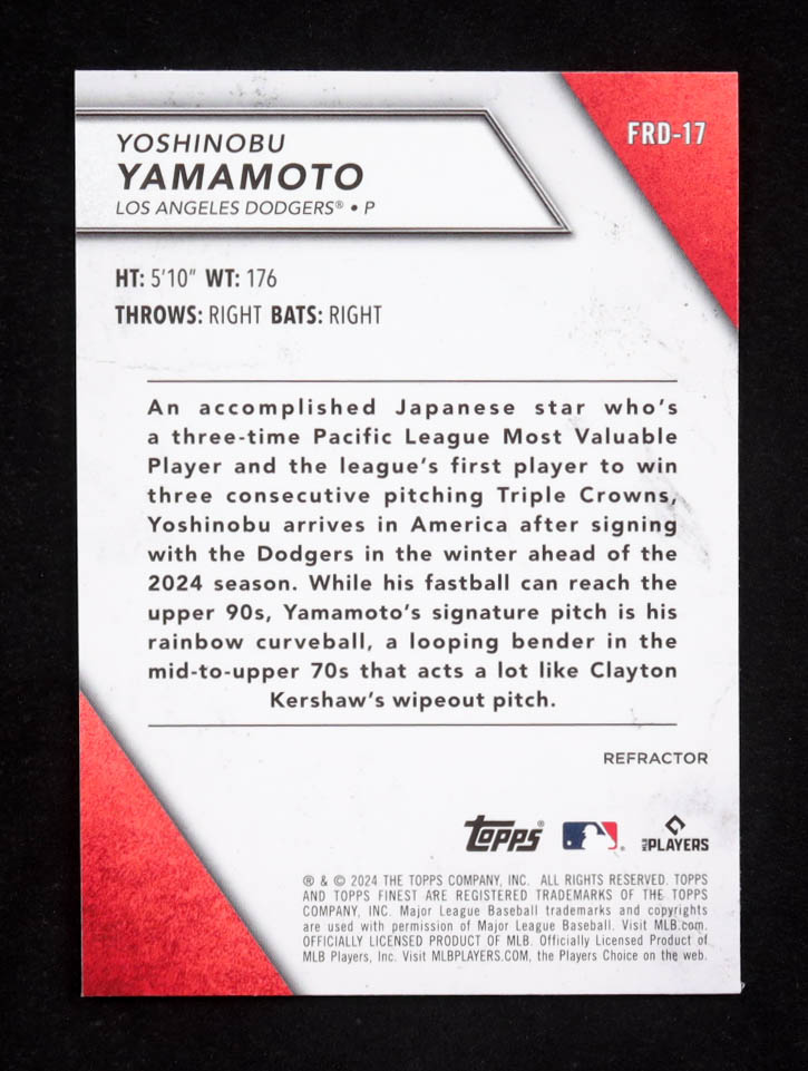 Yoshinobu Yamamoto 2024 Topps Finest Rookies Refractor #FRD-17 RC