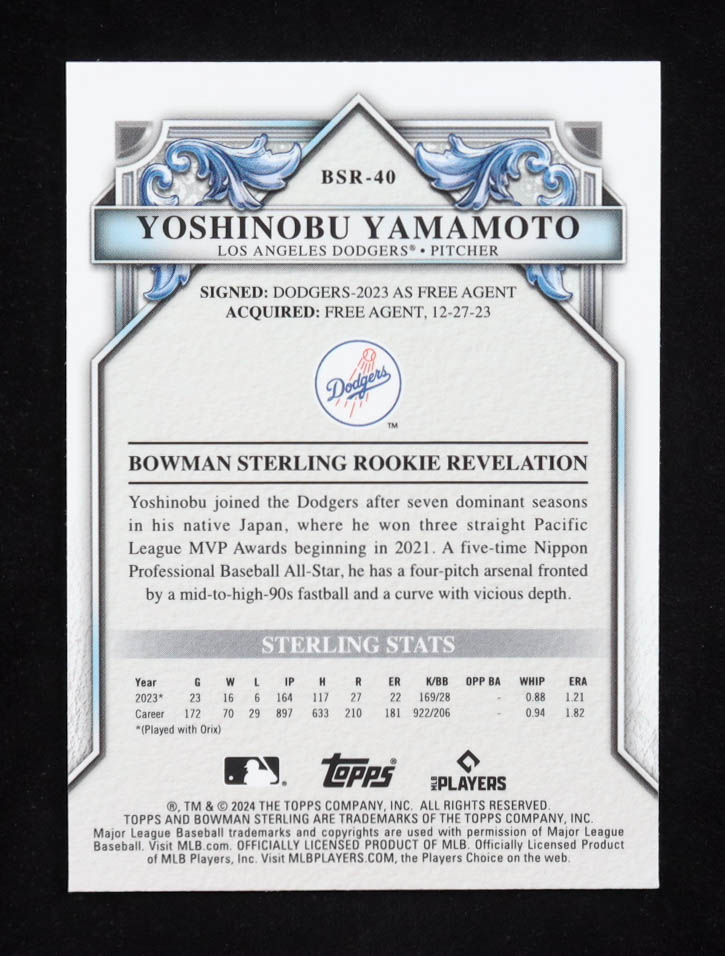 Yoshinobu Yamamoto 2024 Bowman Sterling Rookie Revelation #BSR-40 RC