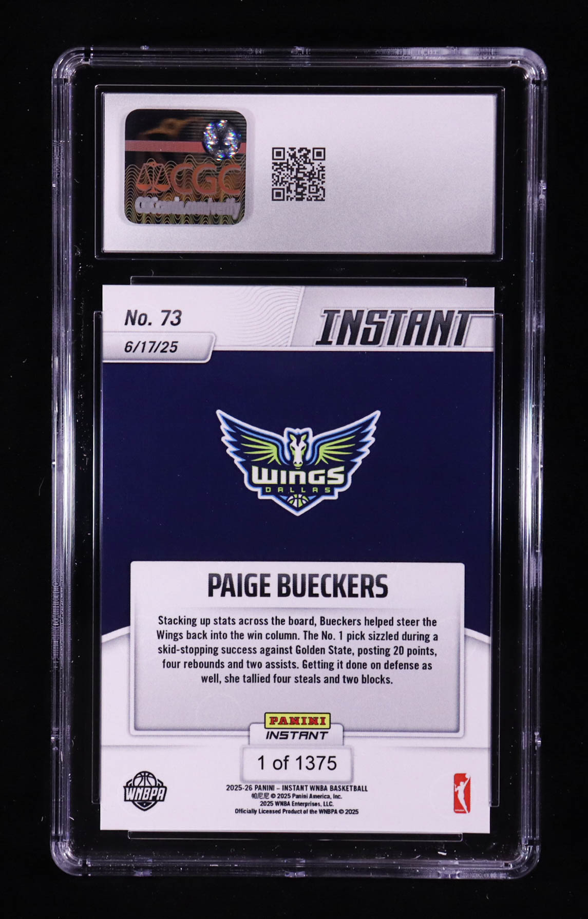 Paige Bueckers 2025-26 Panini Instant WNBA #73 RC (CGC 9)