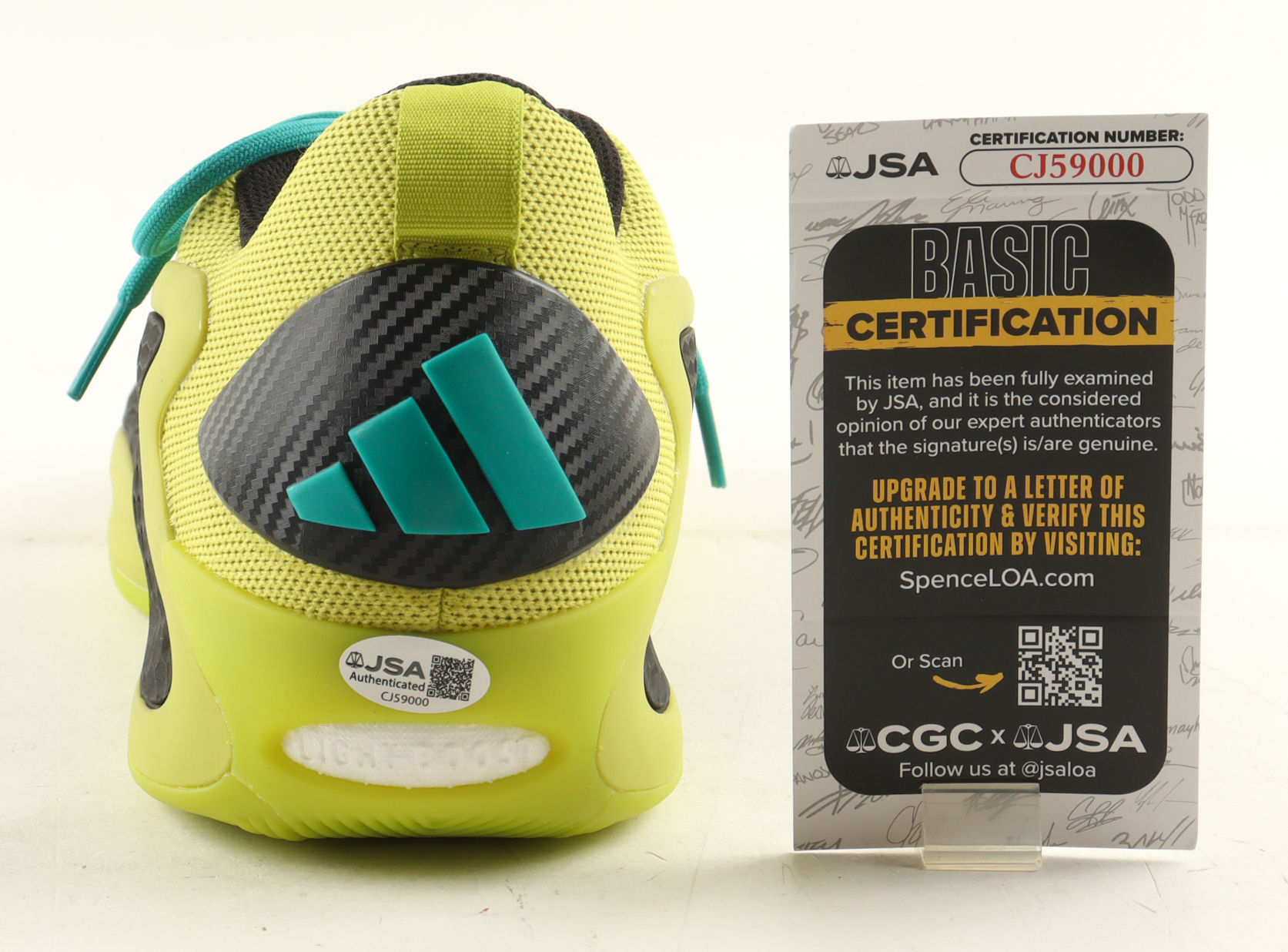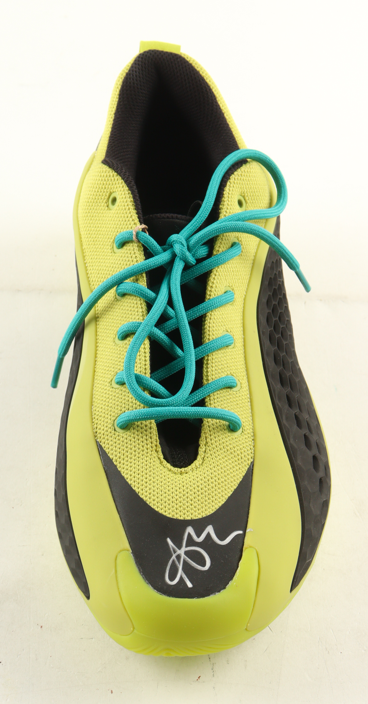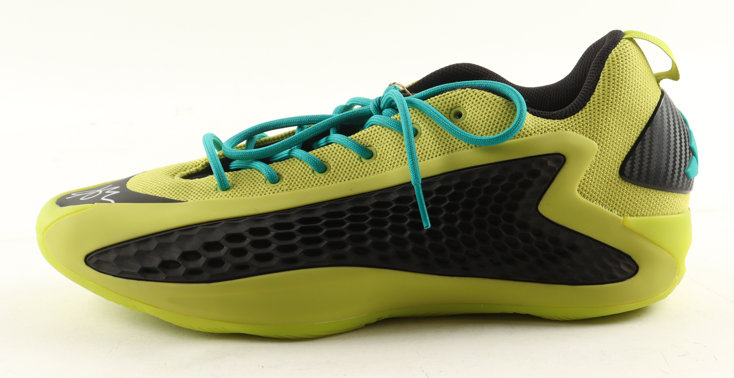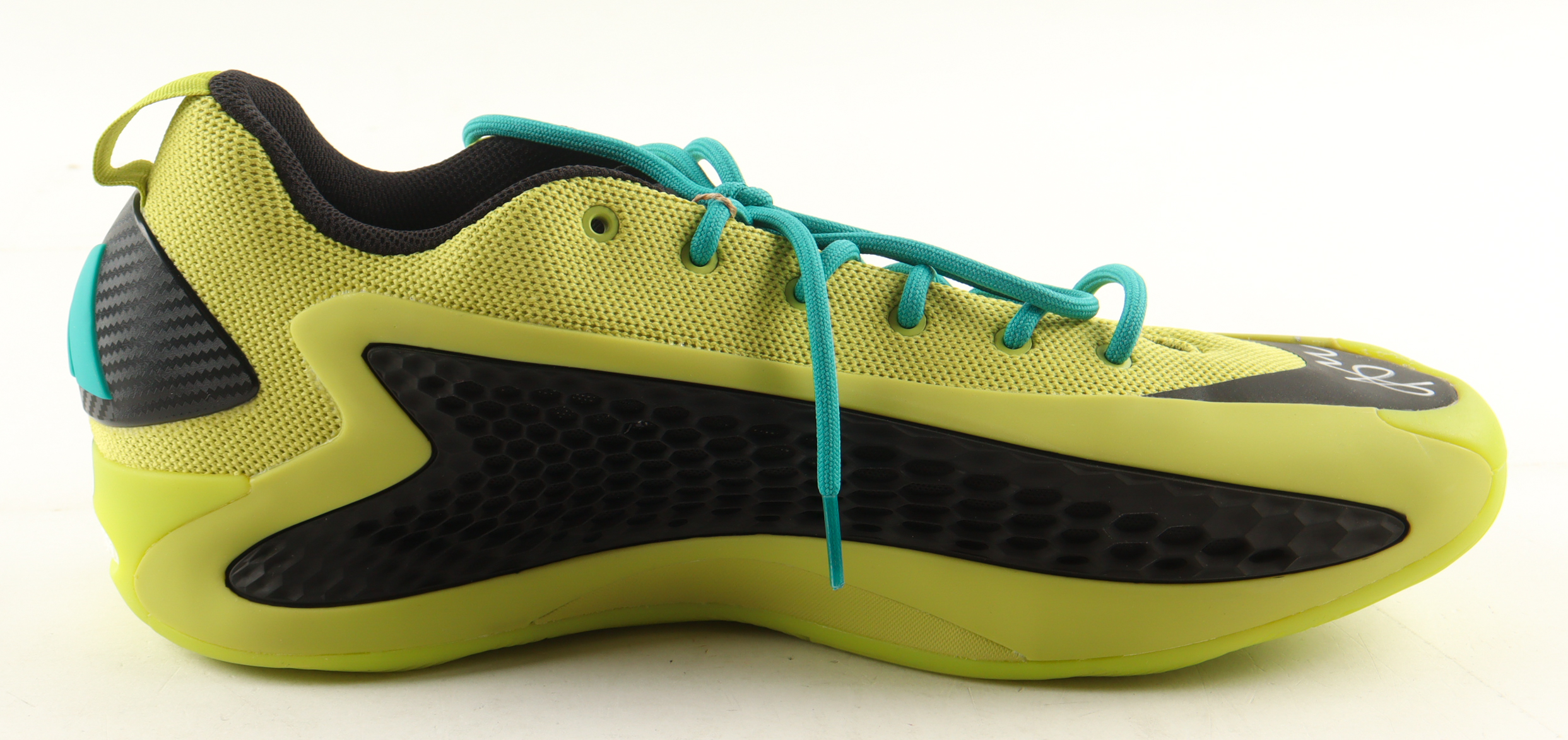 Adidas AE 1 Lucid Lime basketball shoe, size 13. The shoe has been hand-signed by Anthony Edwards (Minnesota Timberwolves).