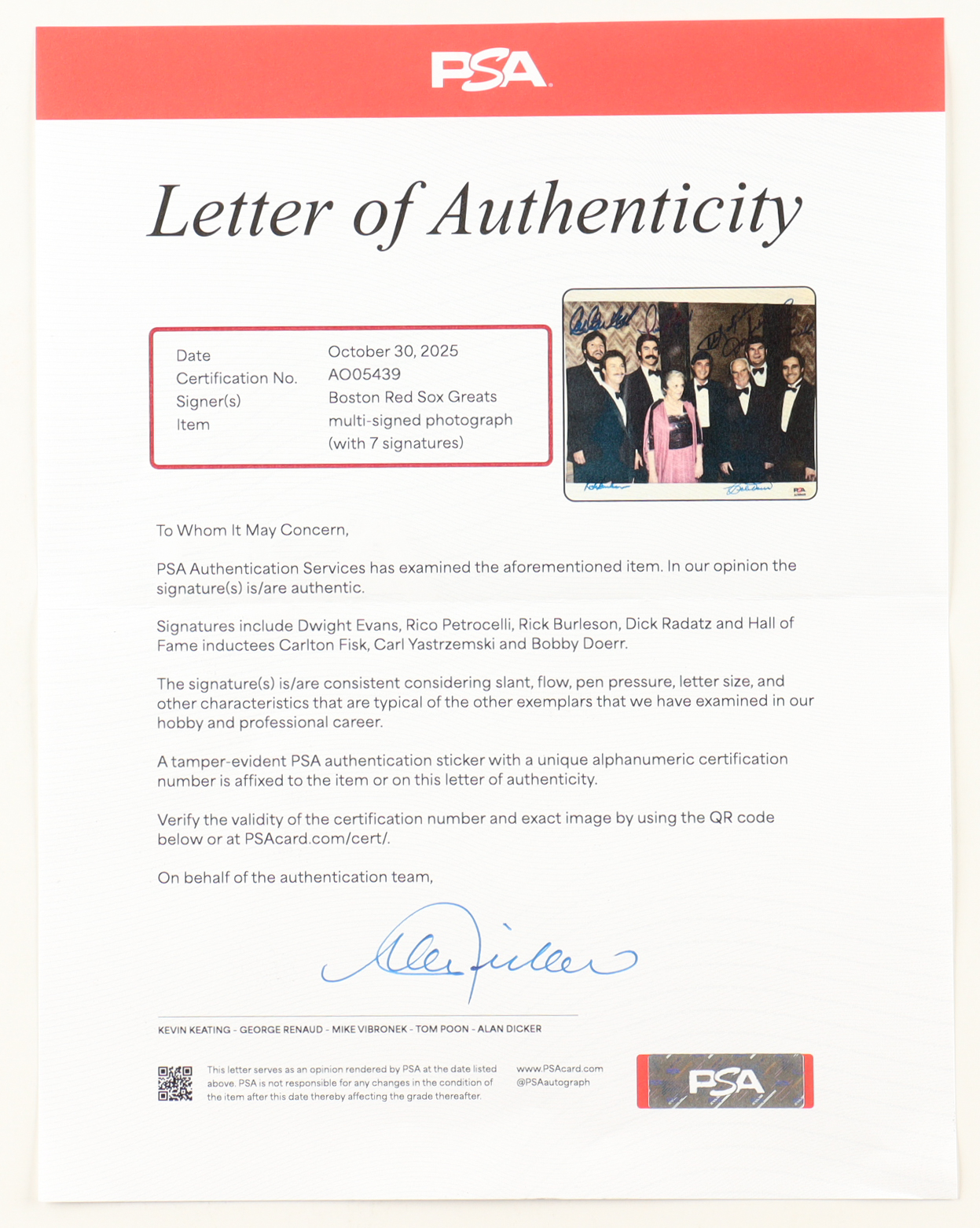 The autograph(s) includes an official PSA/DNA hologram and matching LOA for authenticity purposes.
