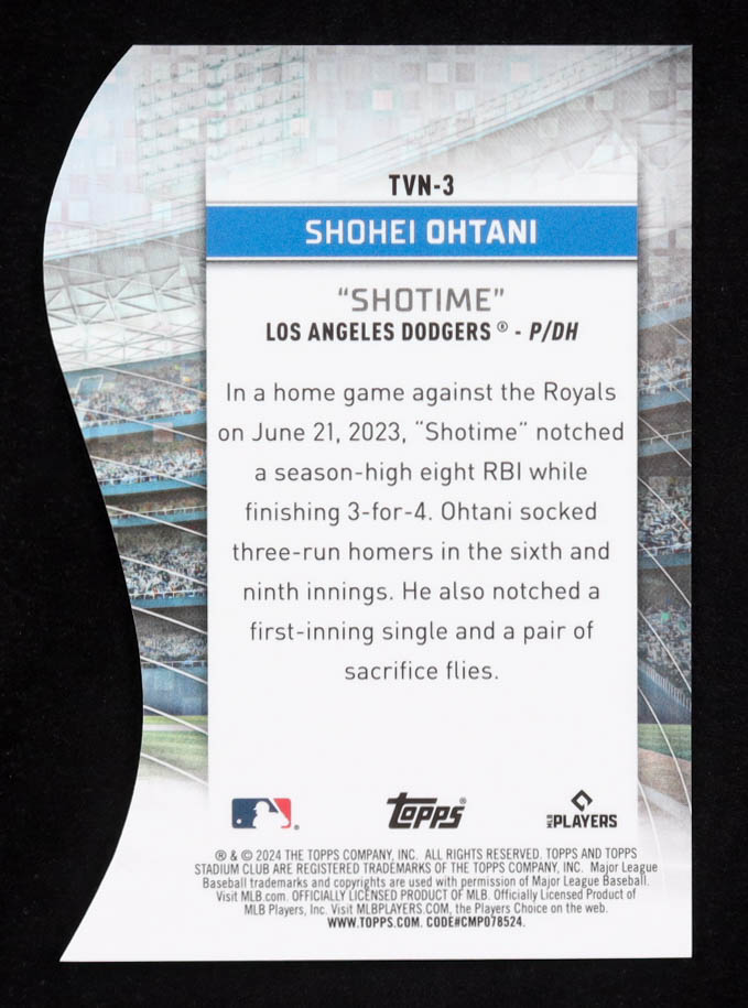 Shohei Ohtani 2024 Topps Stadium Club Chrome Triumvirates Nickname "Shotime" #TVN-3