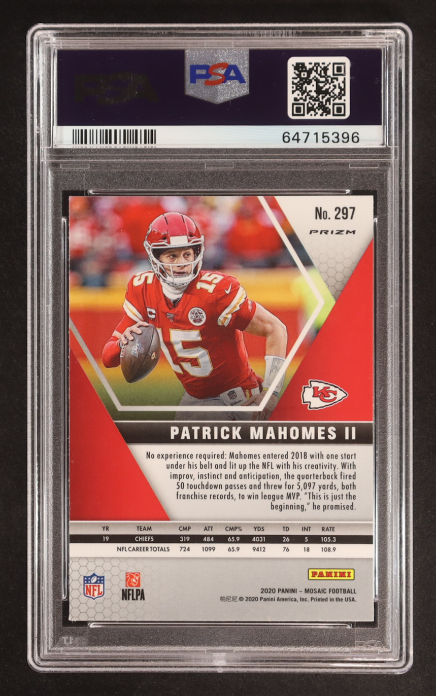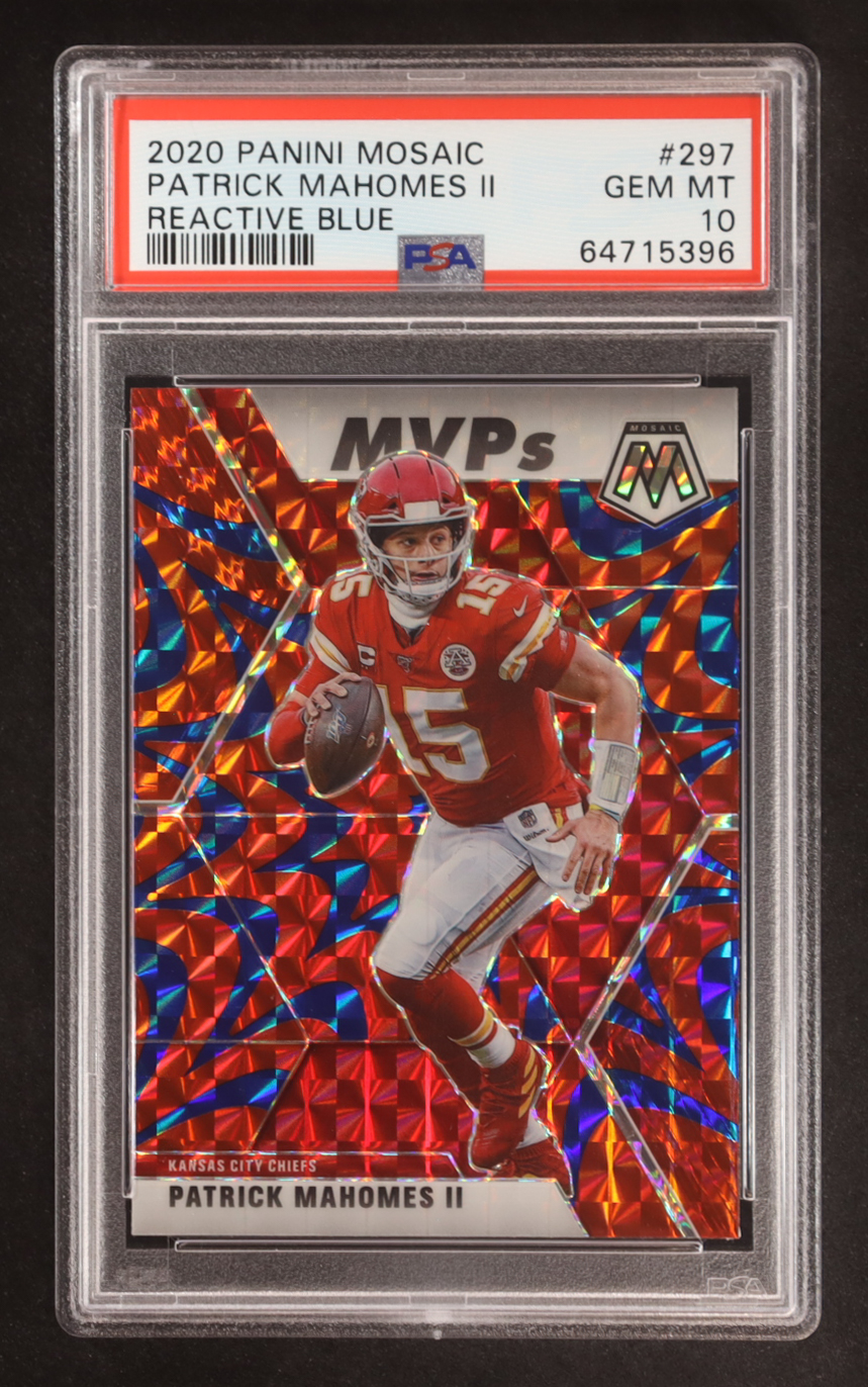 Patrick Mahomes II 2020 Panini Mosaic Mosaic Reactive Blue #297 MVP (PSA 10)
