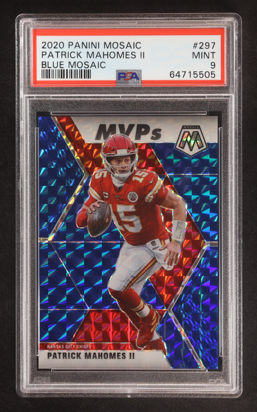 Patrick Mahomes II 2020 Panini Mosaic Mosaic Blue #297 MVP #2/99 (PSA 9)