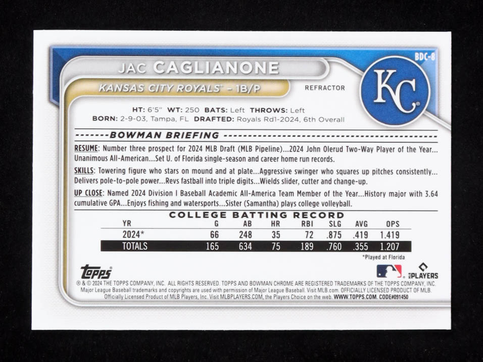 Jac Caglianone 2024 Bowman Chrome 1st Refractor #BDC-8 RC