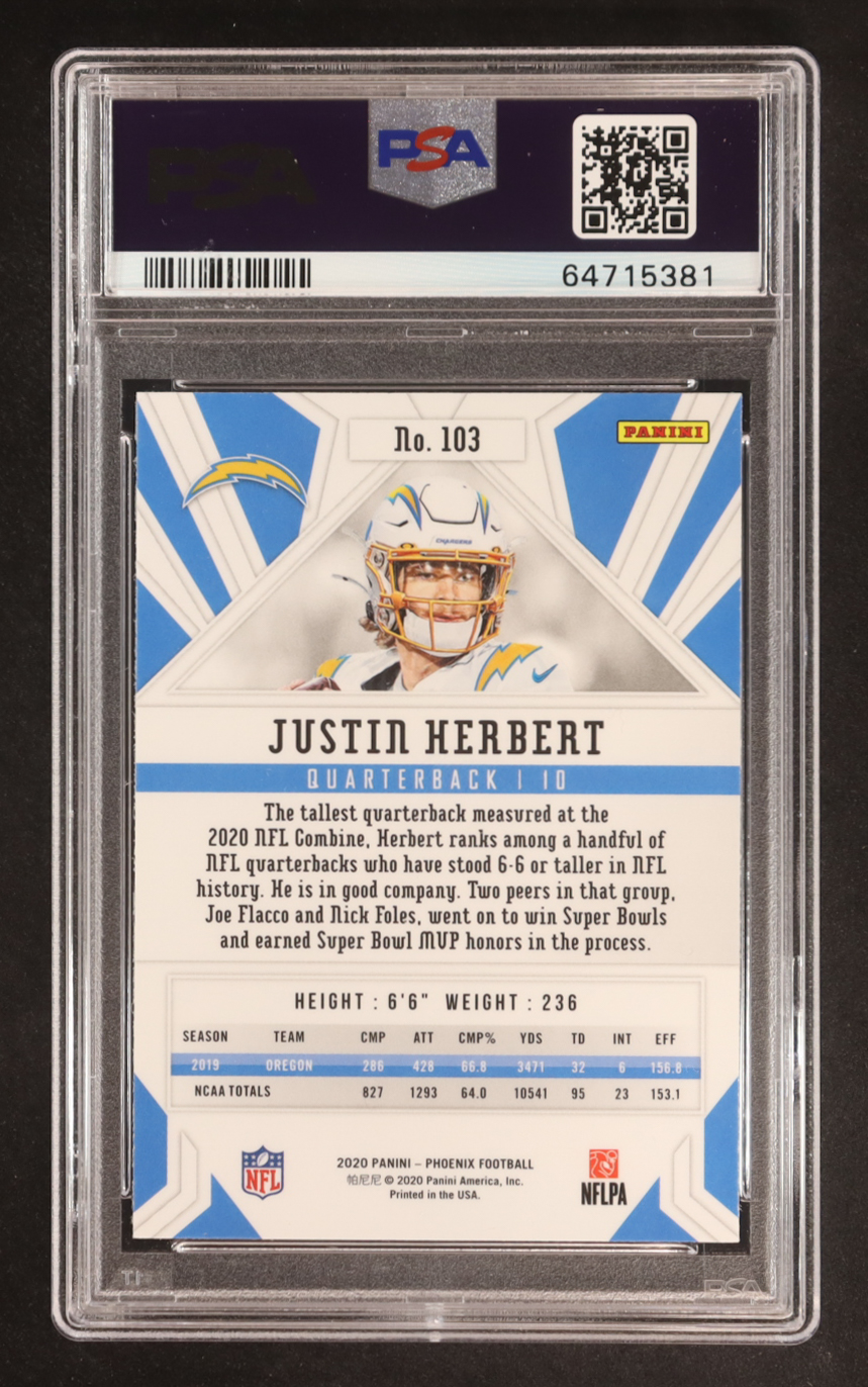 Justin Herbert 2020 Panini Phoenix Fire Burst #103 RC (PSA 10)