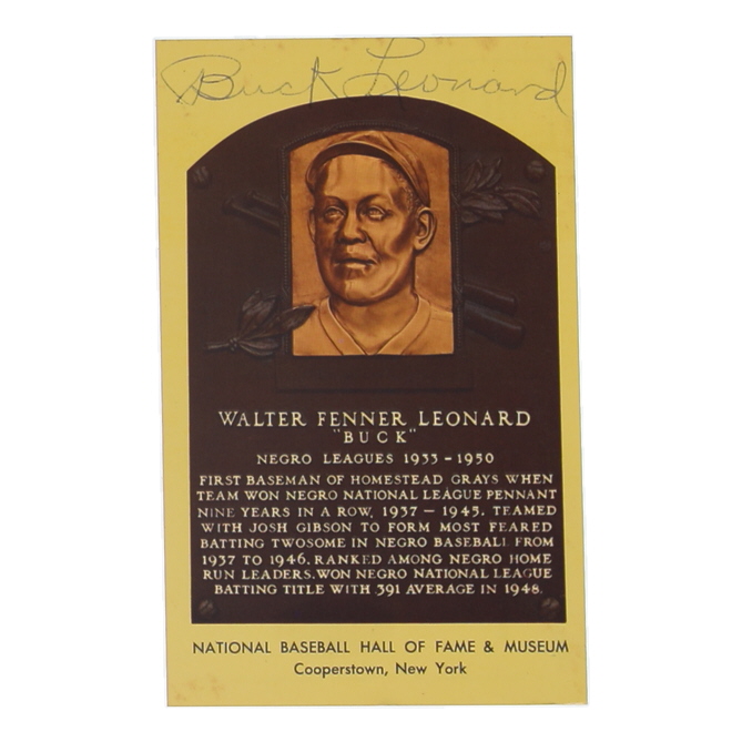 Hall of Fame Plaque postcard has been hand-signed by Buck Leonard (Homestead Grays, HOF).