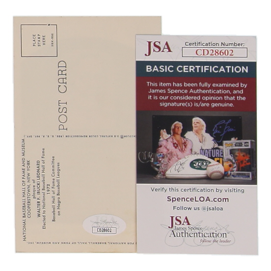 Buck Leonard Signed Hall of Fame Plaque Postcard (JSA)
