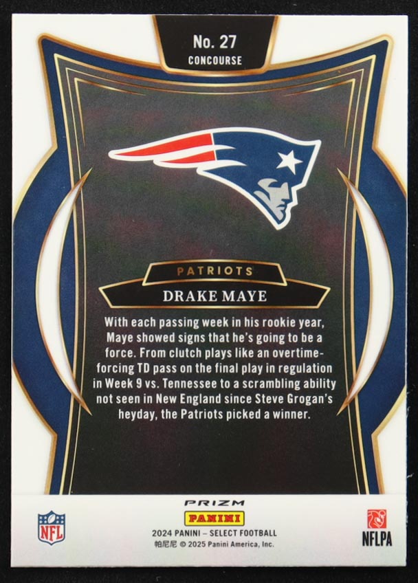 Drake Maye 2024 Select Prizm Green and Red Shock #27 RC