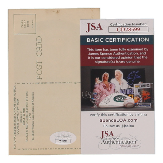 Hall of Fame Plaque postcard has been hand-signed by Early Winn (Washington Nationals, HOF).