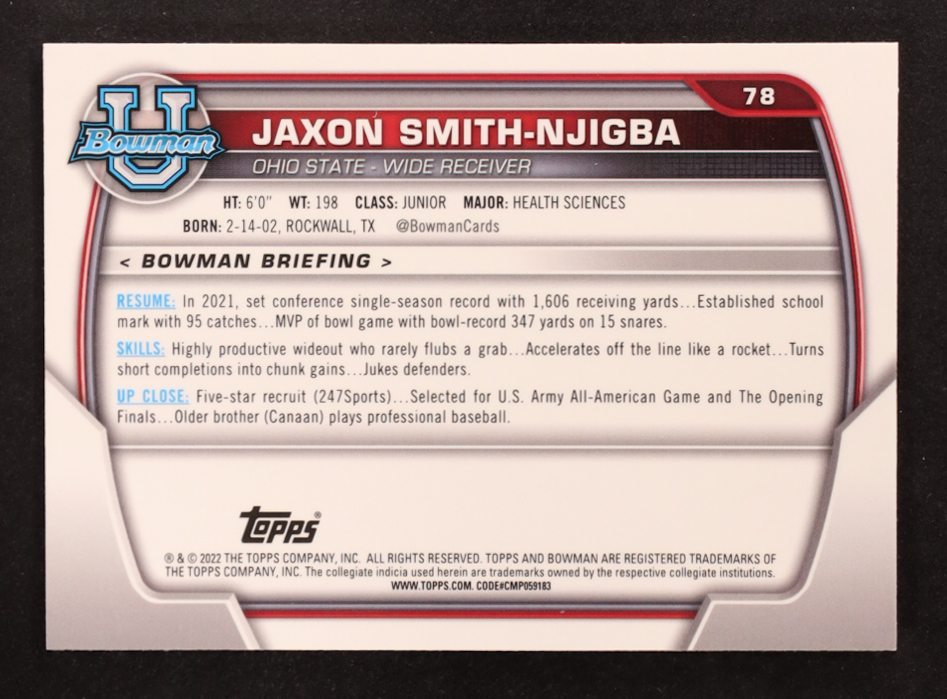 Jaxon Smith-Njigba 2022 Bowman Chrome University Pink Refractors #78 RC
