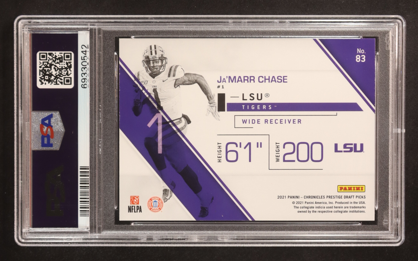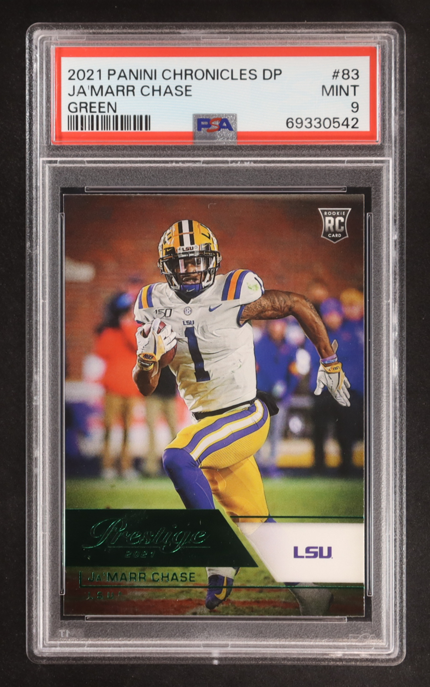 Ja'Marr Chase 2021 Panini Chronicles Draft Picks Prestige Green #83 RC (PSA 9)