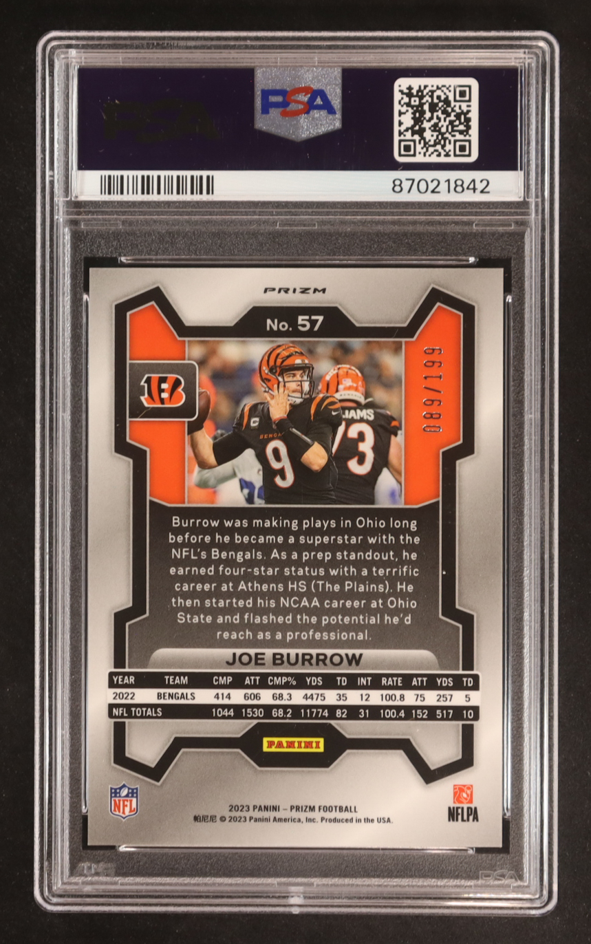 Joe Burrow 2023 Panini Prizm Prizms Blue Wave #57 #89/199 (PSA 9)