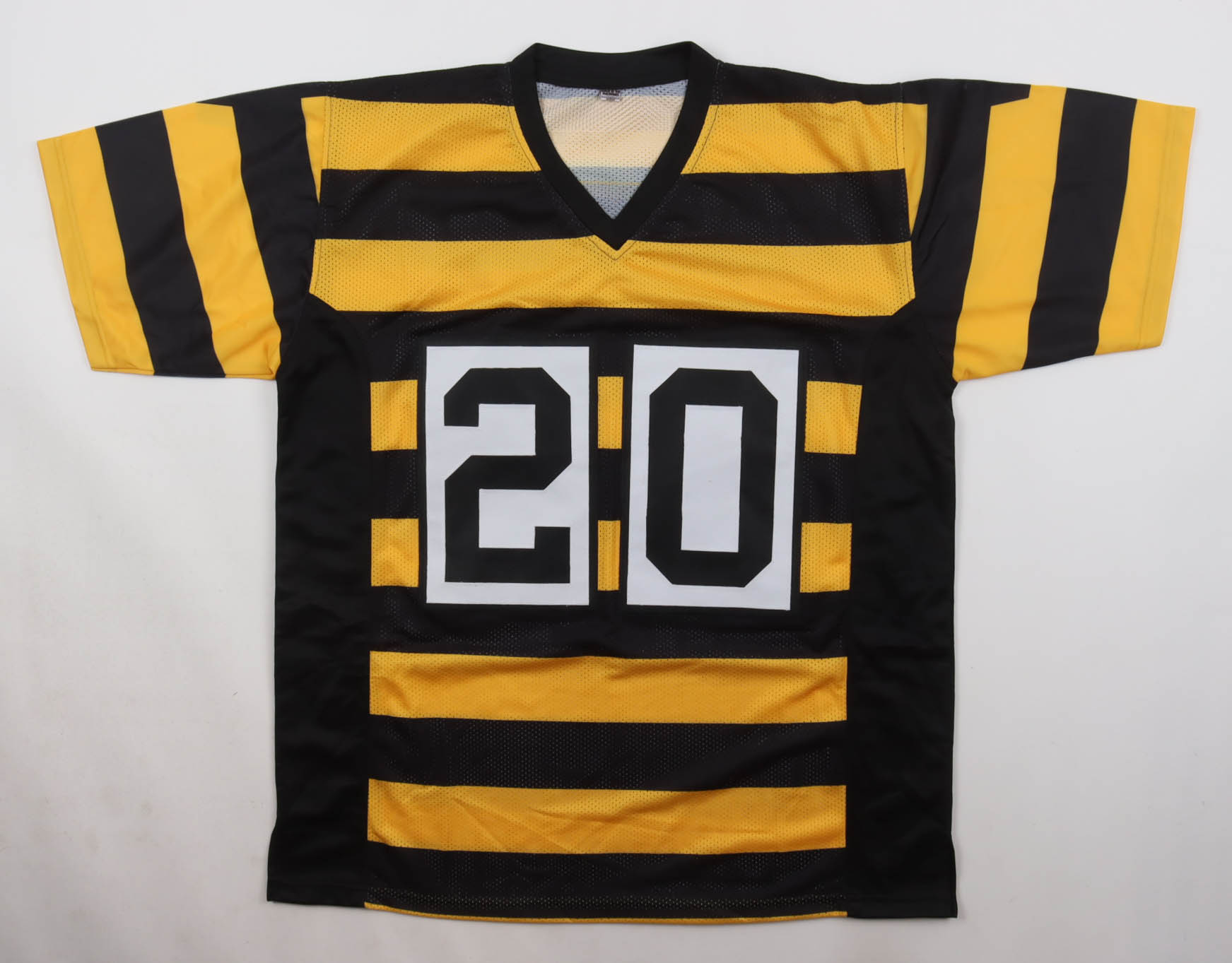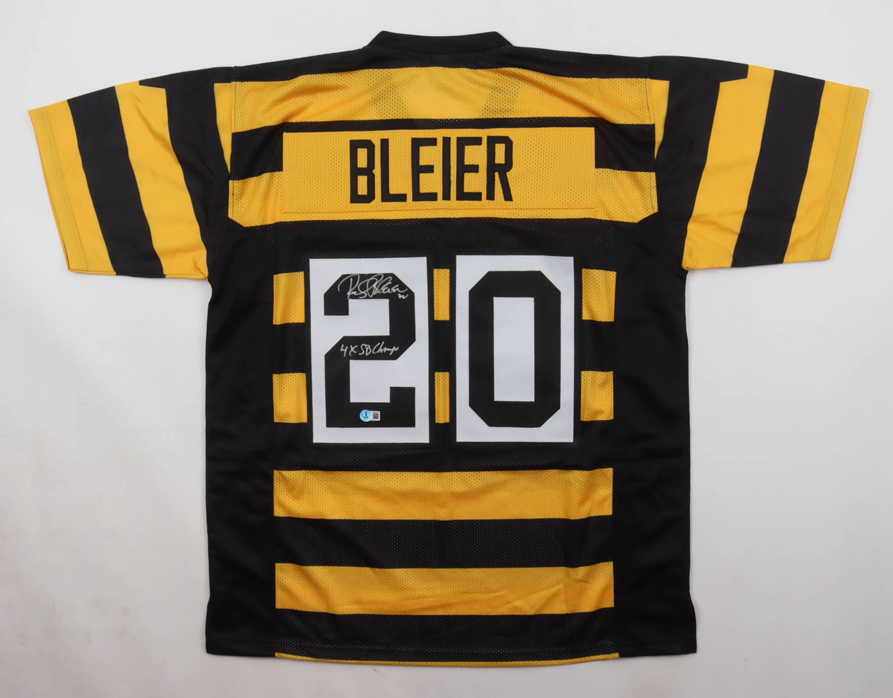 Custom jersey. Everything sewn on, size XL. Hand-signed and inscribed by Rocky Bleier.