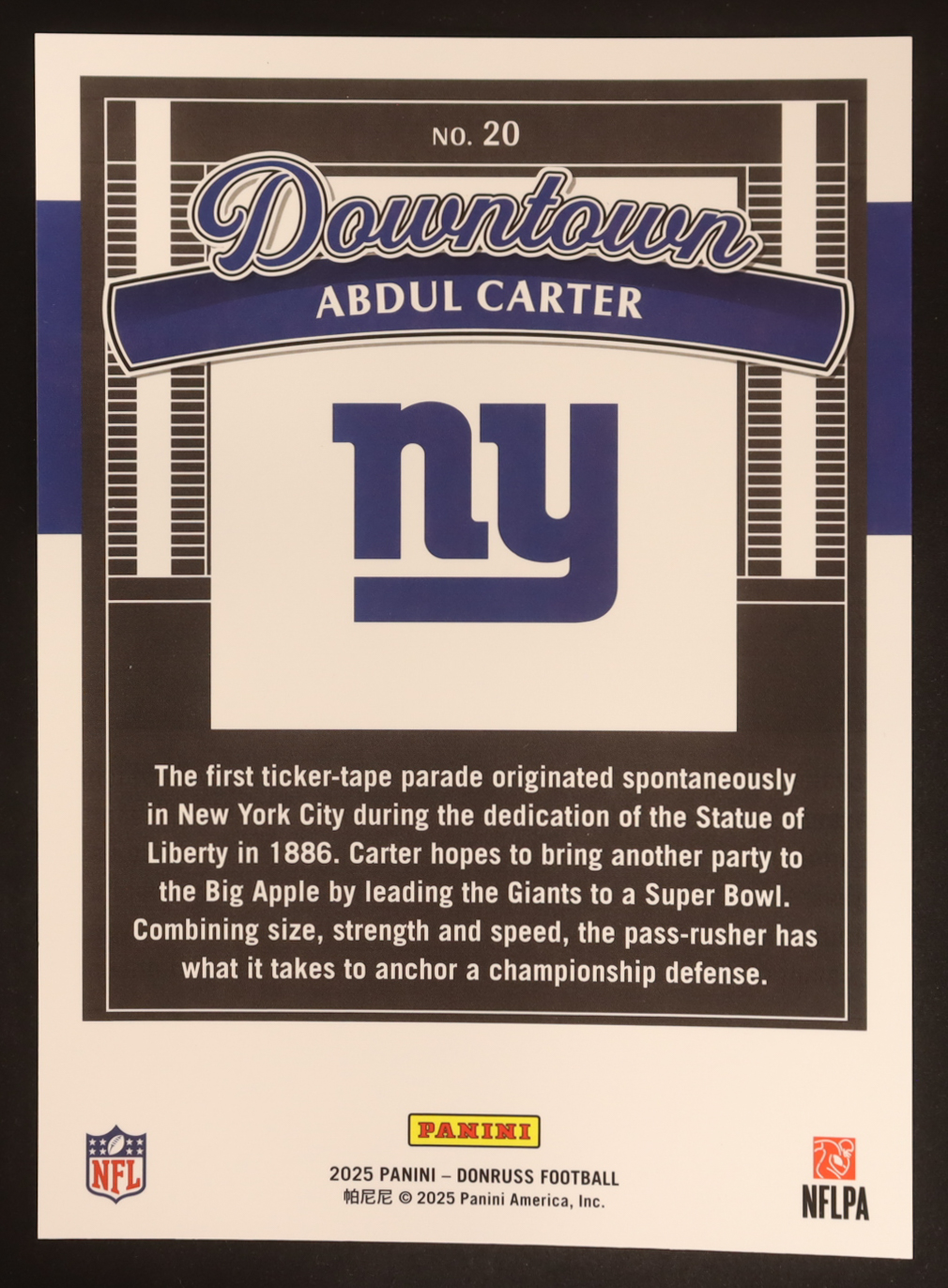 Abdul Carter 2025 Donruss Downtown! Oversize #20 RC