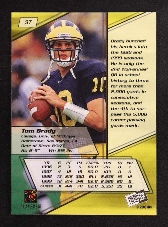 Tom Brady 2000 Press Pass Gold Zone #37 RC