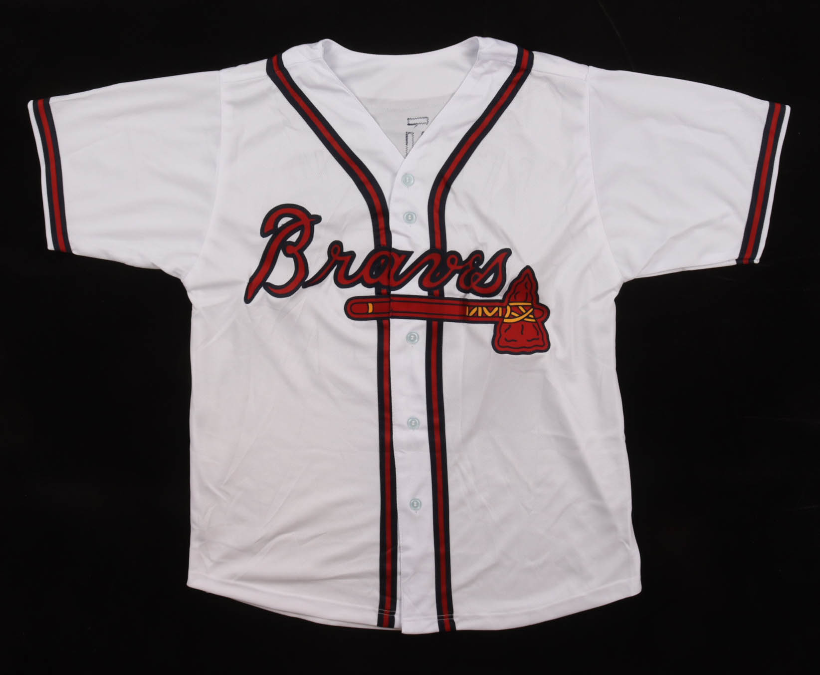 Custom jersey with everything sewn on, size XL. Hand-signed by Ronald Acuna Jr.. Please note, there is staining throughout the jersey. See photos regarding the condition of the item.