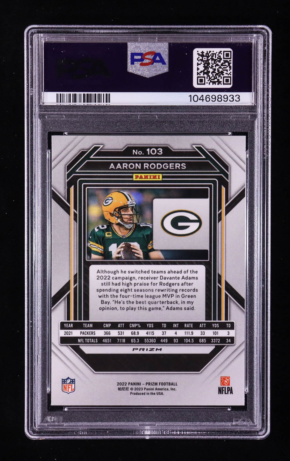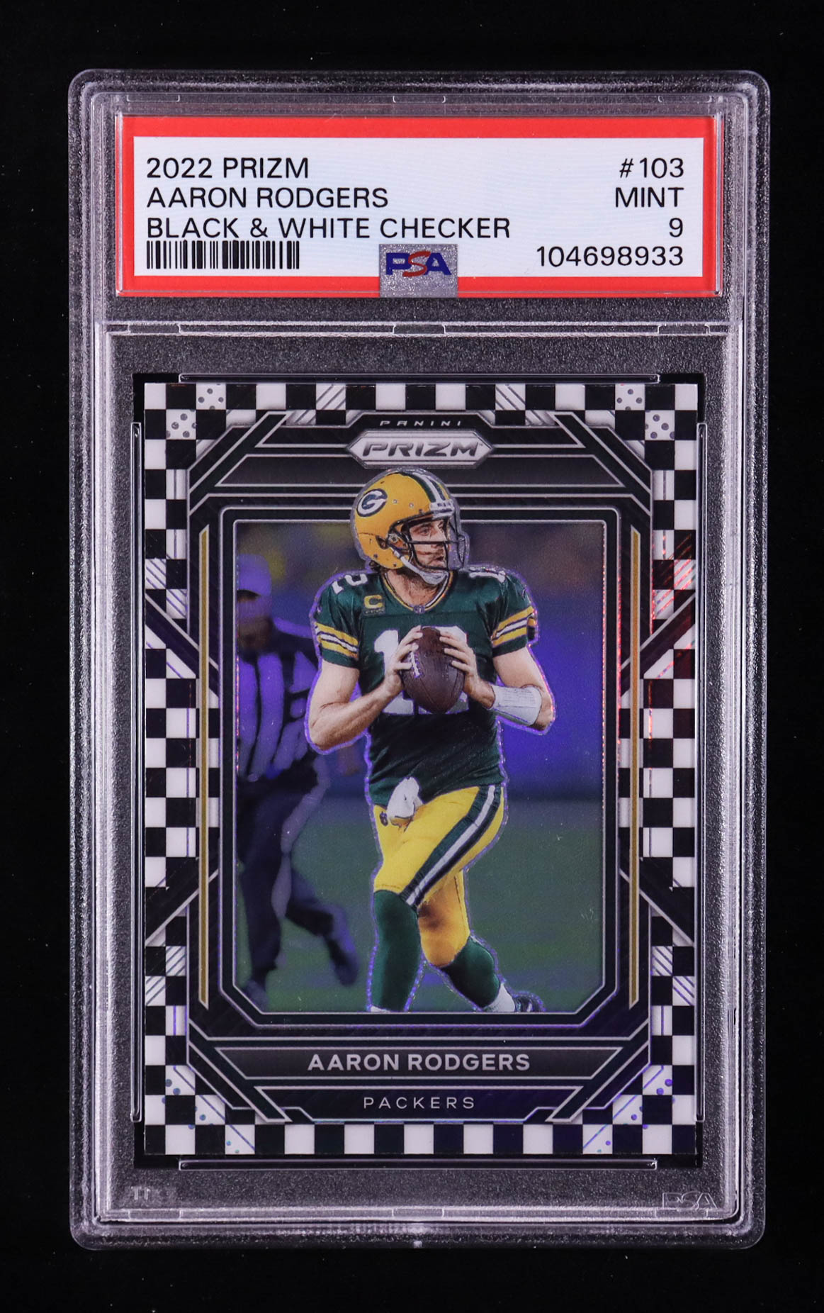 Aaron Rodgers 2022 Panini Prizm Prizms Black and White Checker #103 (PSA 9)