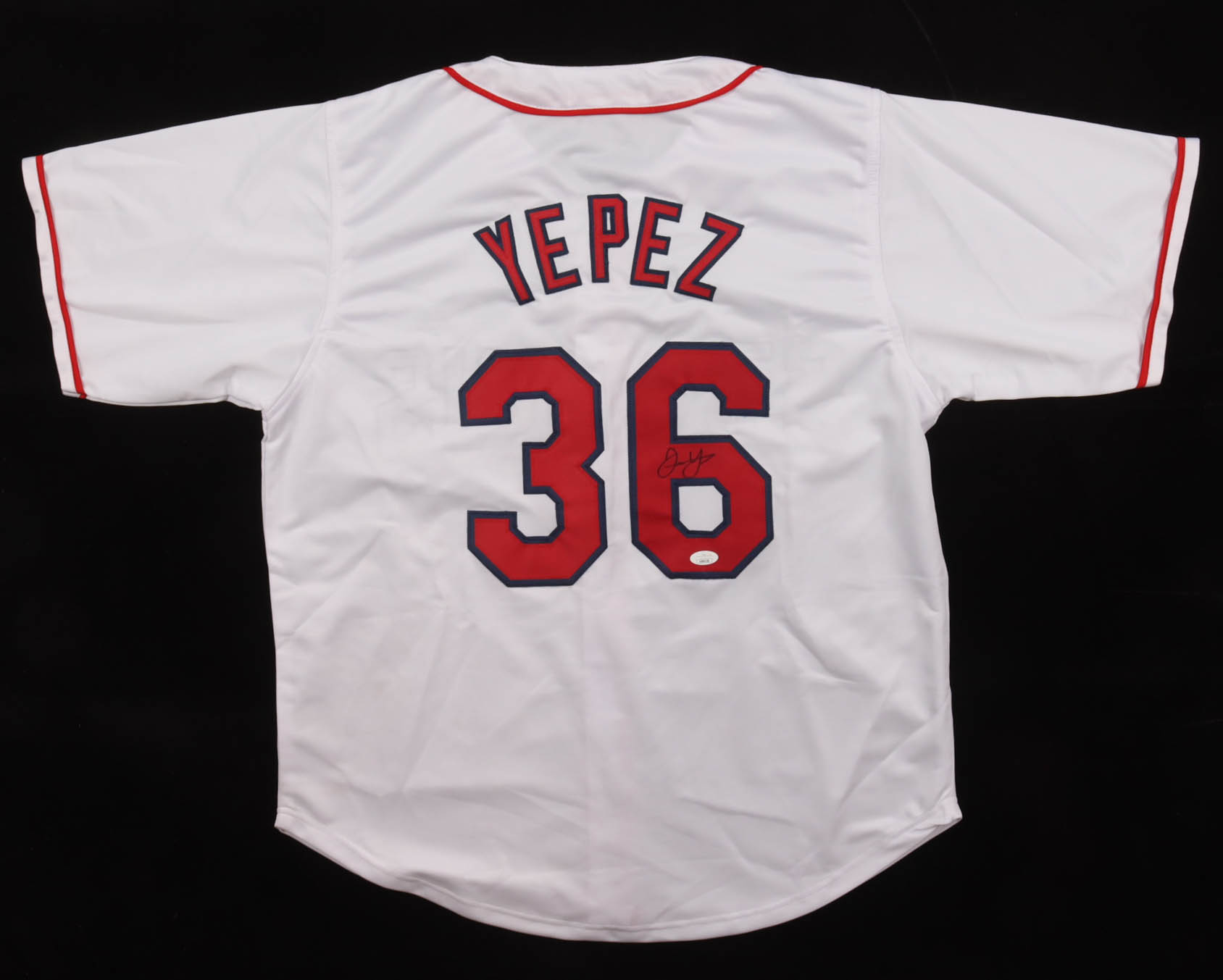 Custom jersey with everything sewn on, size XL. Hand-signed by Juan Yepez.